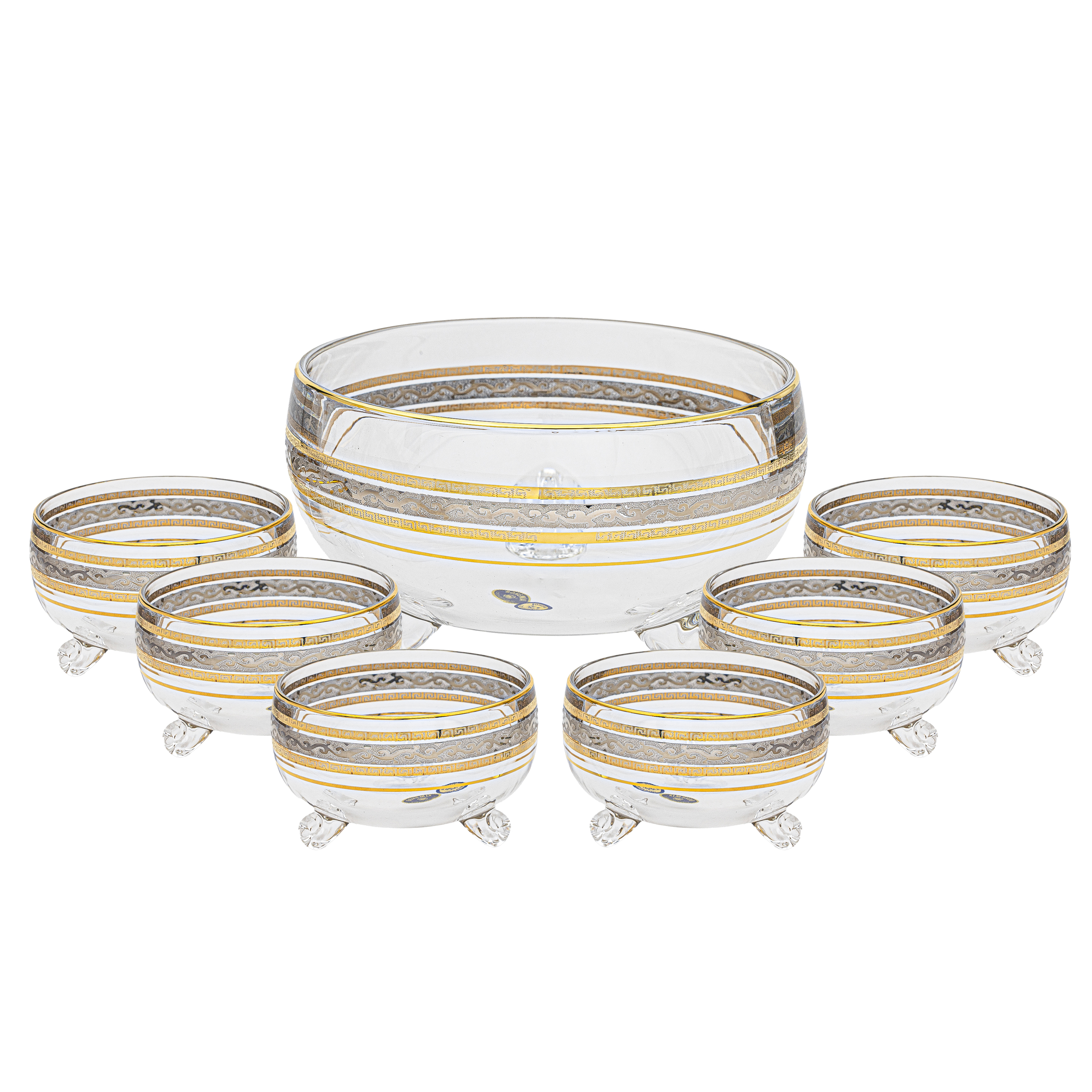 Item: Bohemia Crystal Bowl Set, 7 Pieces -Gold & Silver