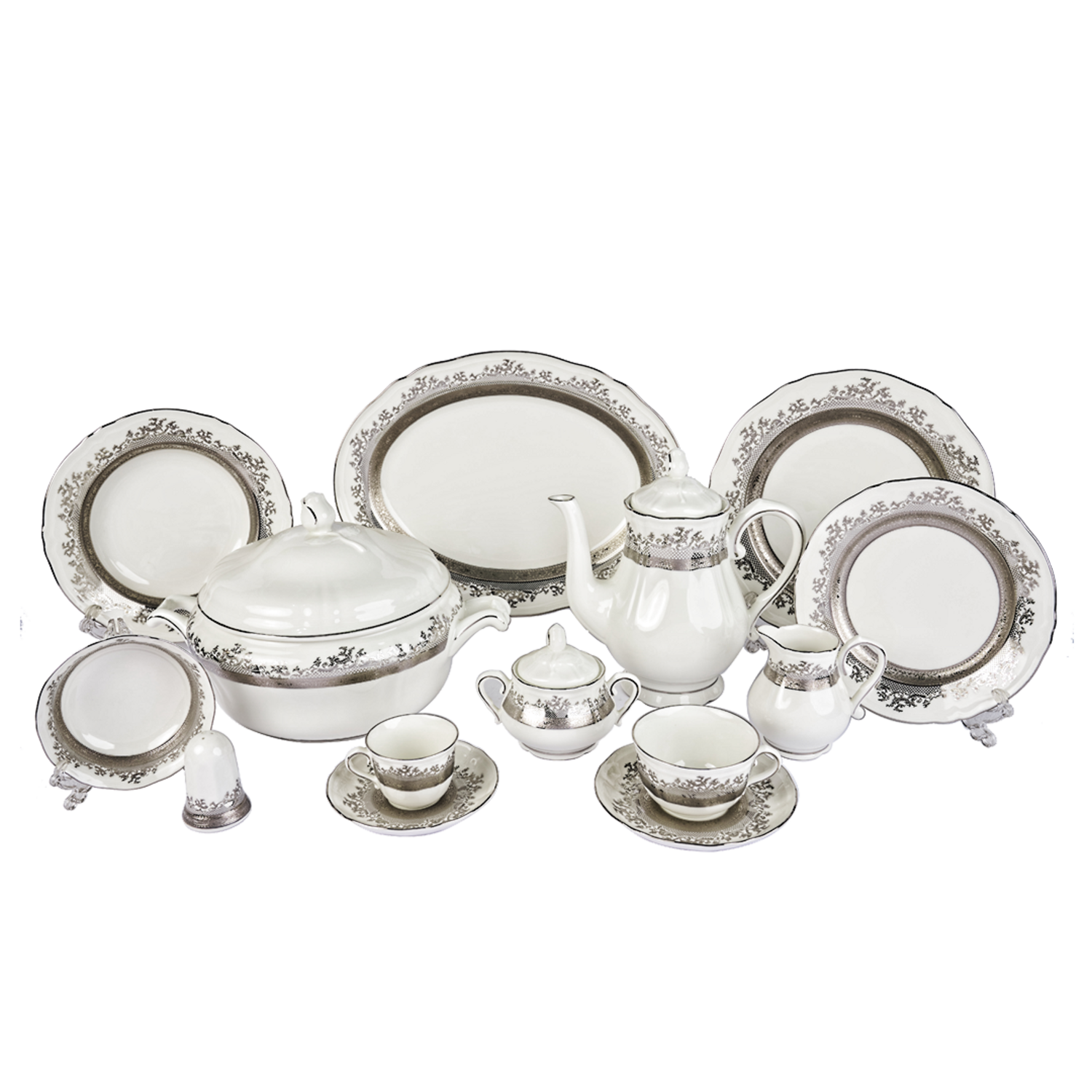 Falkenporzellan Dinner Set, 112 Pieces -Silver -Porcelain