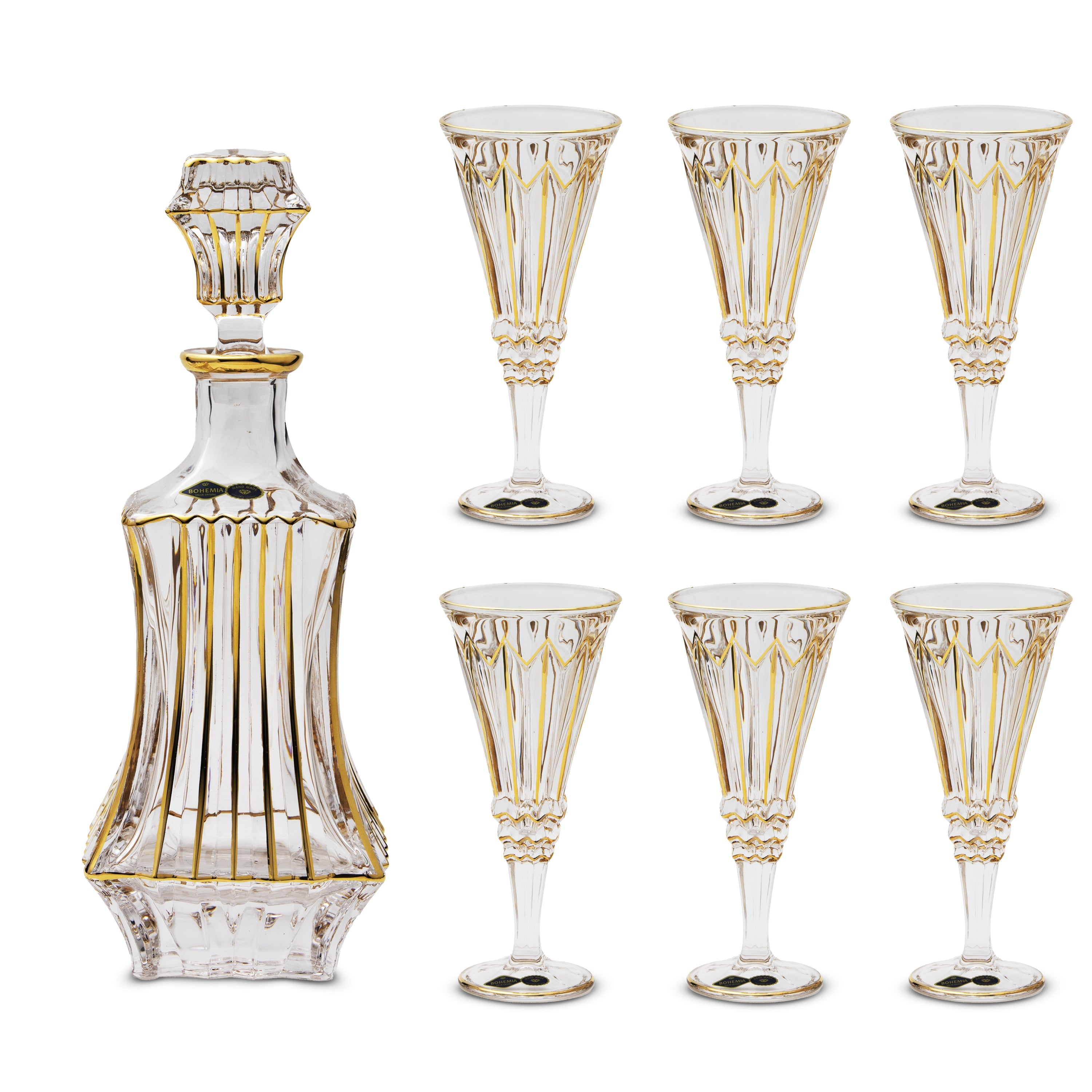 Bohemia Crystal Bottle & Goblet Set, 7 Pieces - Gold