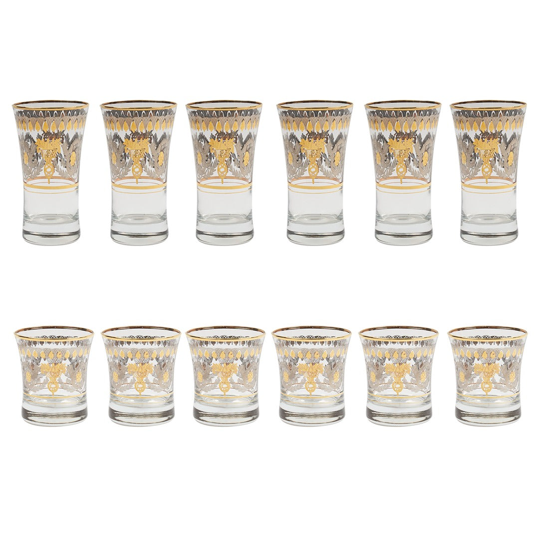 Pasabahce Longdrink & Tumbler Set, 12 Pieces -Silver & Gold -340 & 250 ml