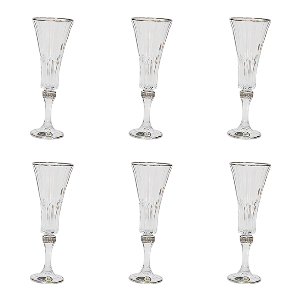 Item: Bohemia Crystal Flute Set, 6 Pieces -150 ml -Silver