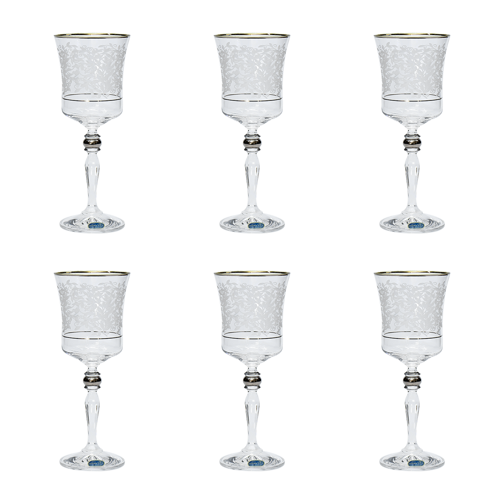 Bohemia Crystal Goblet Set, 6 Pieces -Silver -220 ml