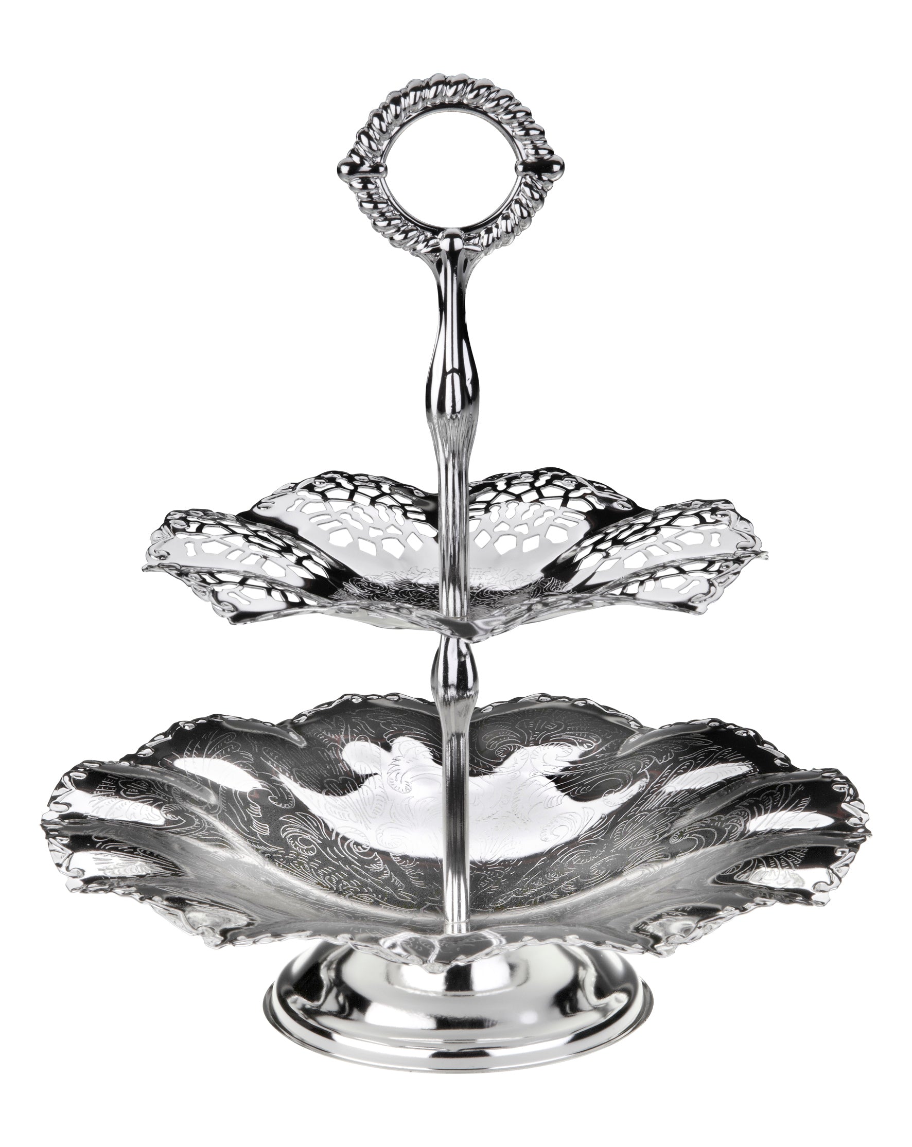 Item: Queen Anne 2 Tier Wavy Edge Cake Stand -27x23cm -Silver Plated