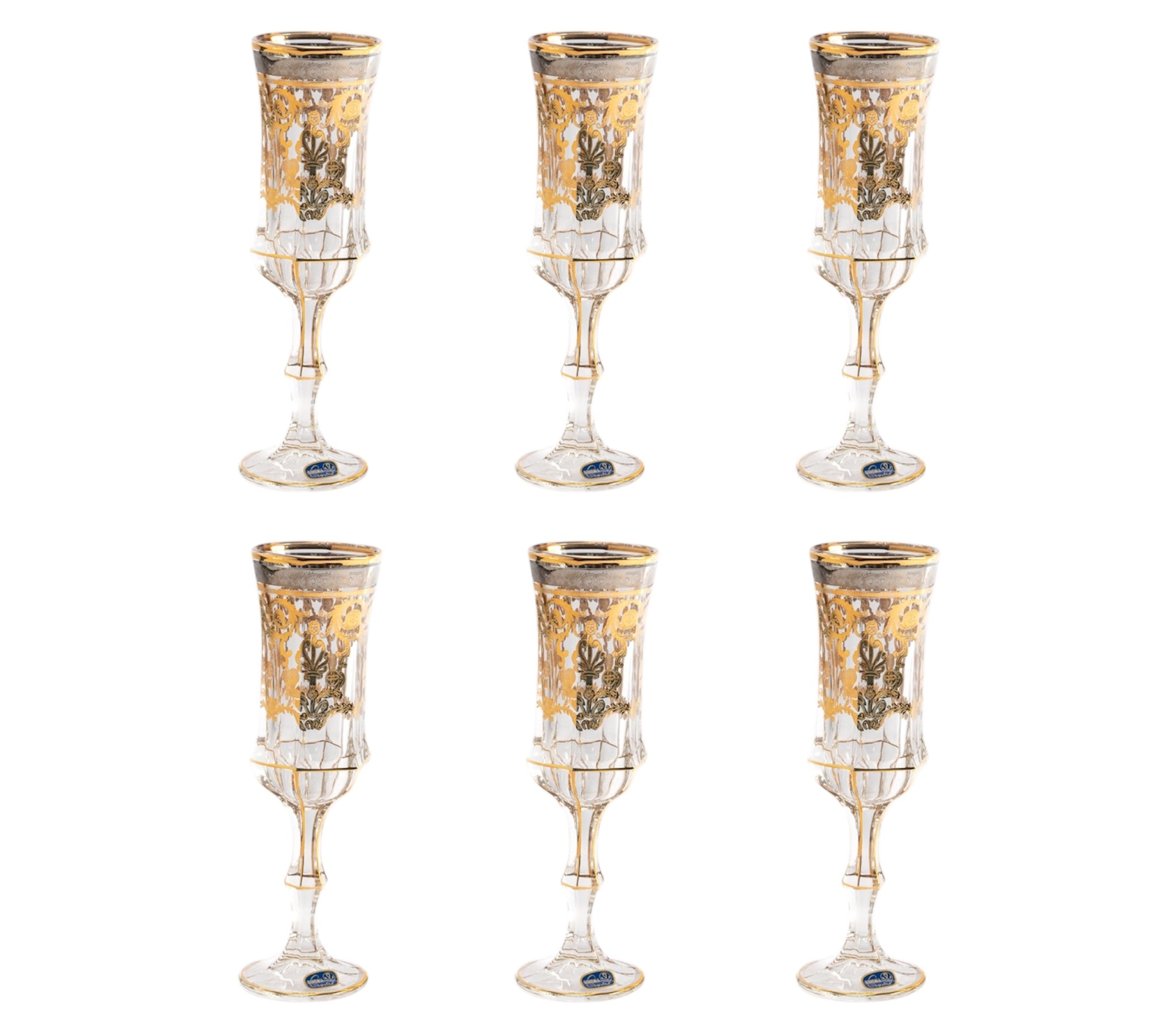 Item: Bohemia Crystal Flute Set, 6 Pieces -Silver & Gold