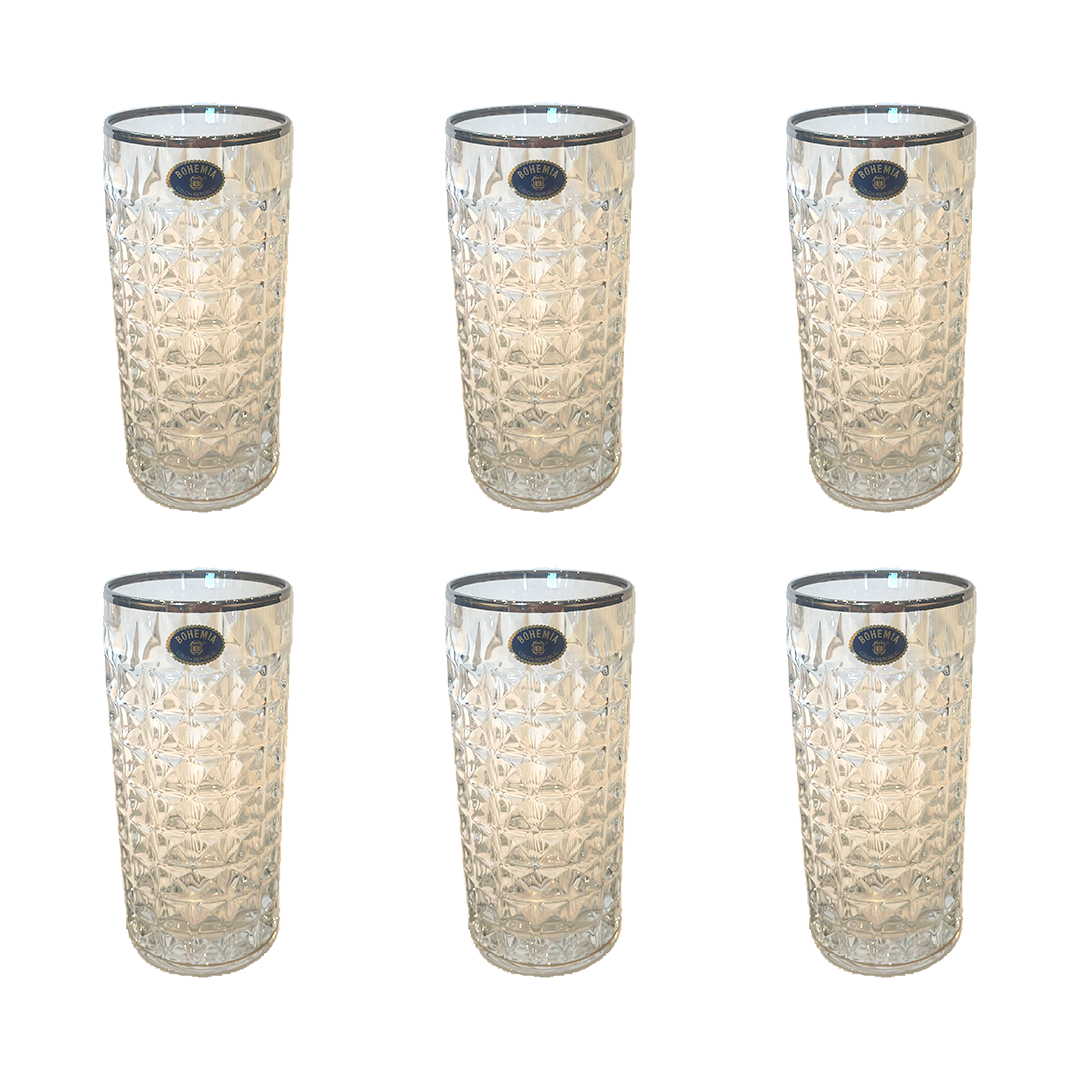 Item: Bohemia Crystal Longdrink Diamond Set, 6 Pieces -Silver -260 ml