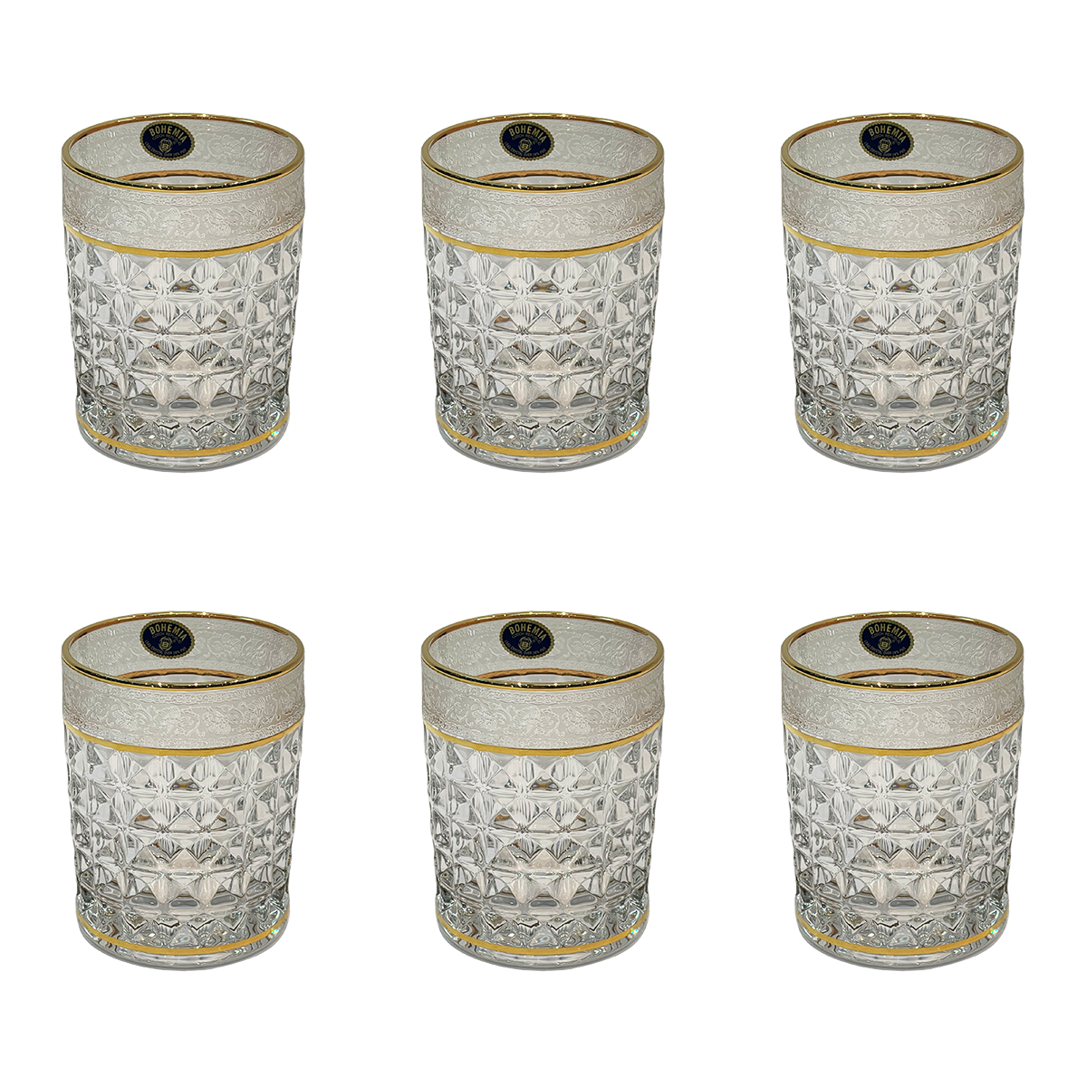 Item: Bohemia Crystal Tumbler Diamond Set, 6 Pieces -Gold -230 ml