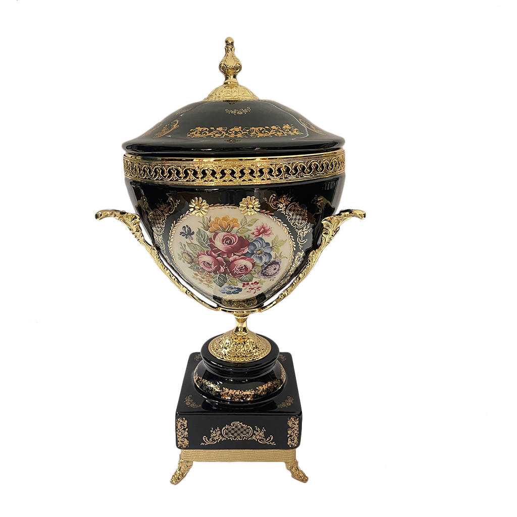Item: Limoge Rostema Potiche with Gold Plated Legs -Cobalt Blue & Gold -25x50 cm