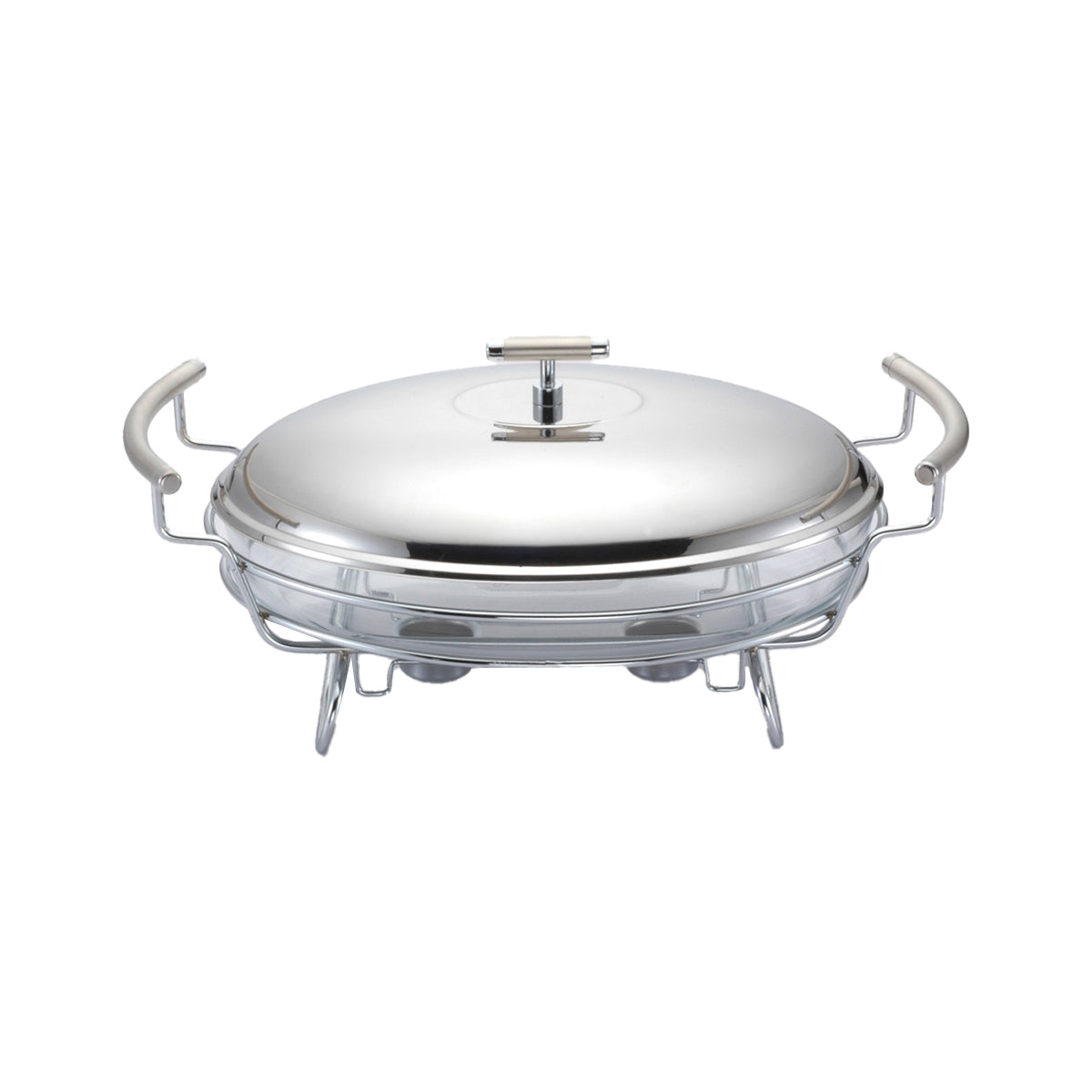 Oval Food Warmer with 2 Candles -3.0 Lit. -Stainless Steel 18/10 & Tempered Glass