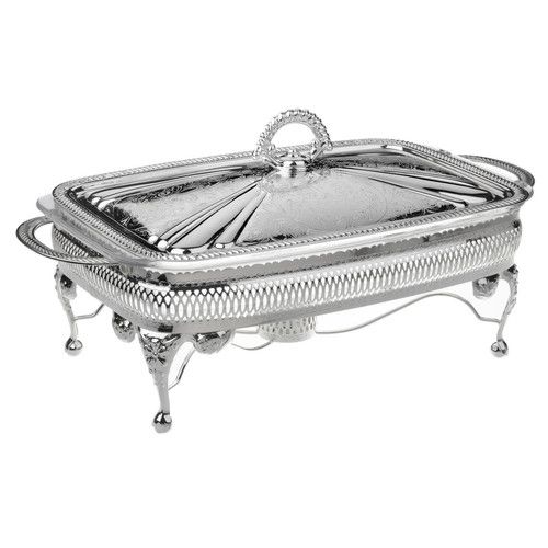 Item: Queen Anne Rectangular Food Warmer with Handles & Candle Holder -38x20x18.5cm