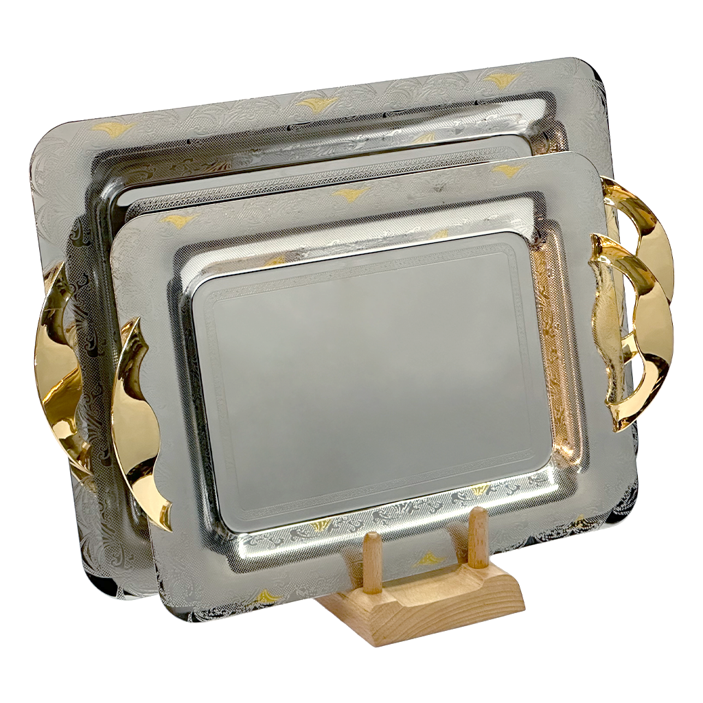 Item: Rectangular Tray with Handles, 2 Pieces -Italian Design -Silver & Gold -Stainless Steel 18/10