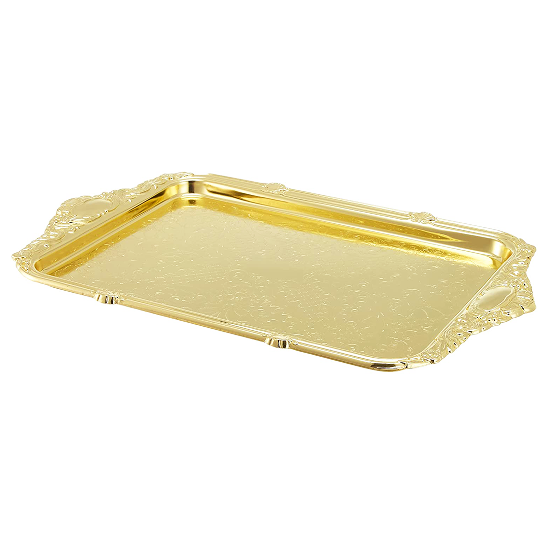 Queen Anne Oblong Tray Integral Handle -49x28cm -Gold Plated -49x28 cm