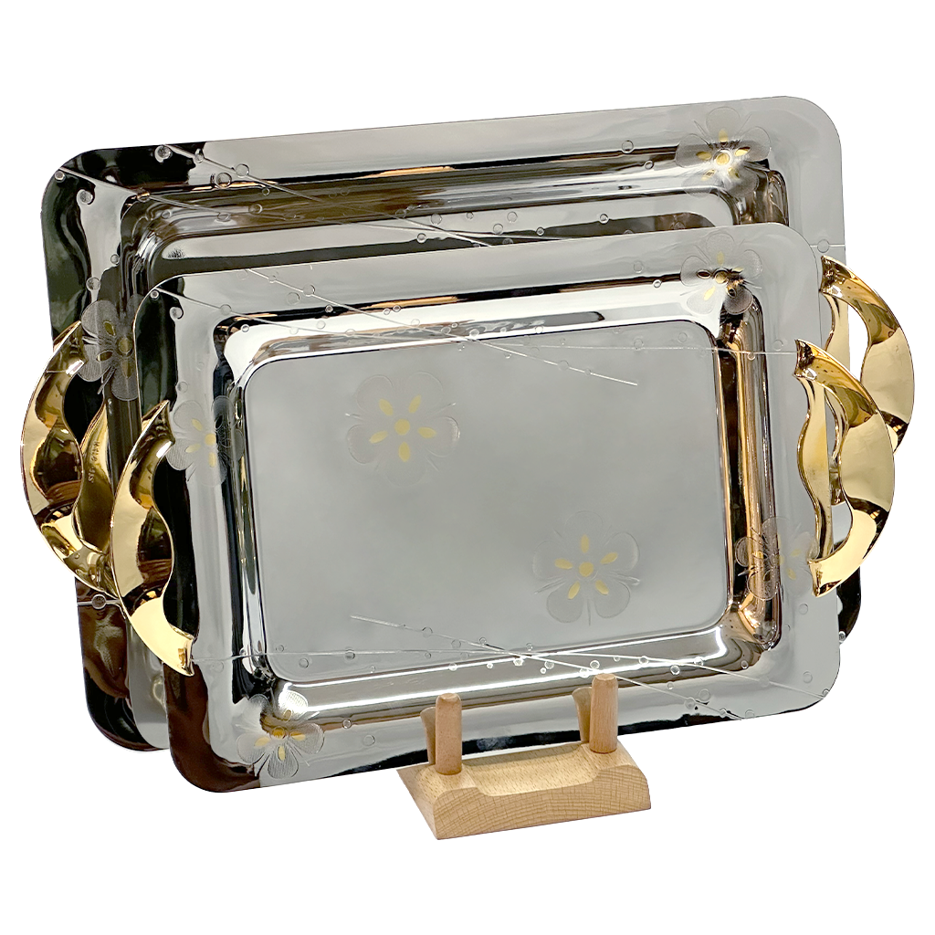 Item: Rectangular Tray with Handles, 2 Pieces -Italian Design -Silver & Gold -Stainless Steel 18/10