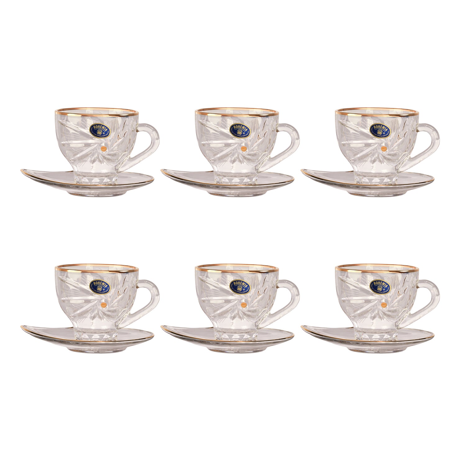 Bohemia Crystal Tea Cup with Saucer Set, 12 Pieces -Gold