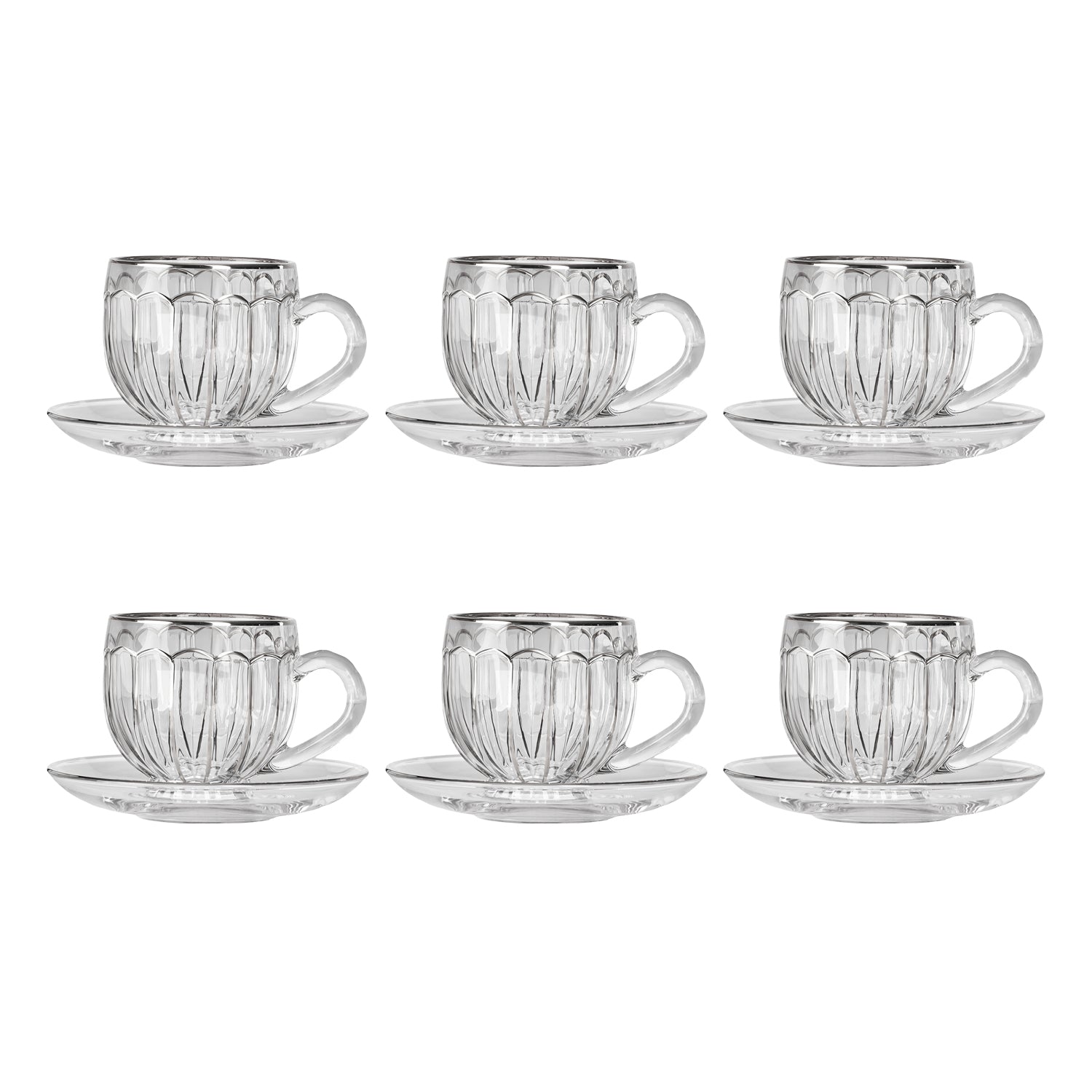 Item: Teacup with Saucer Set, 12 Pieces -Silver