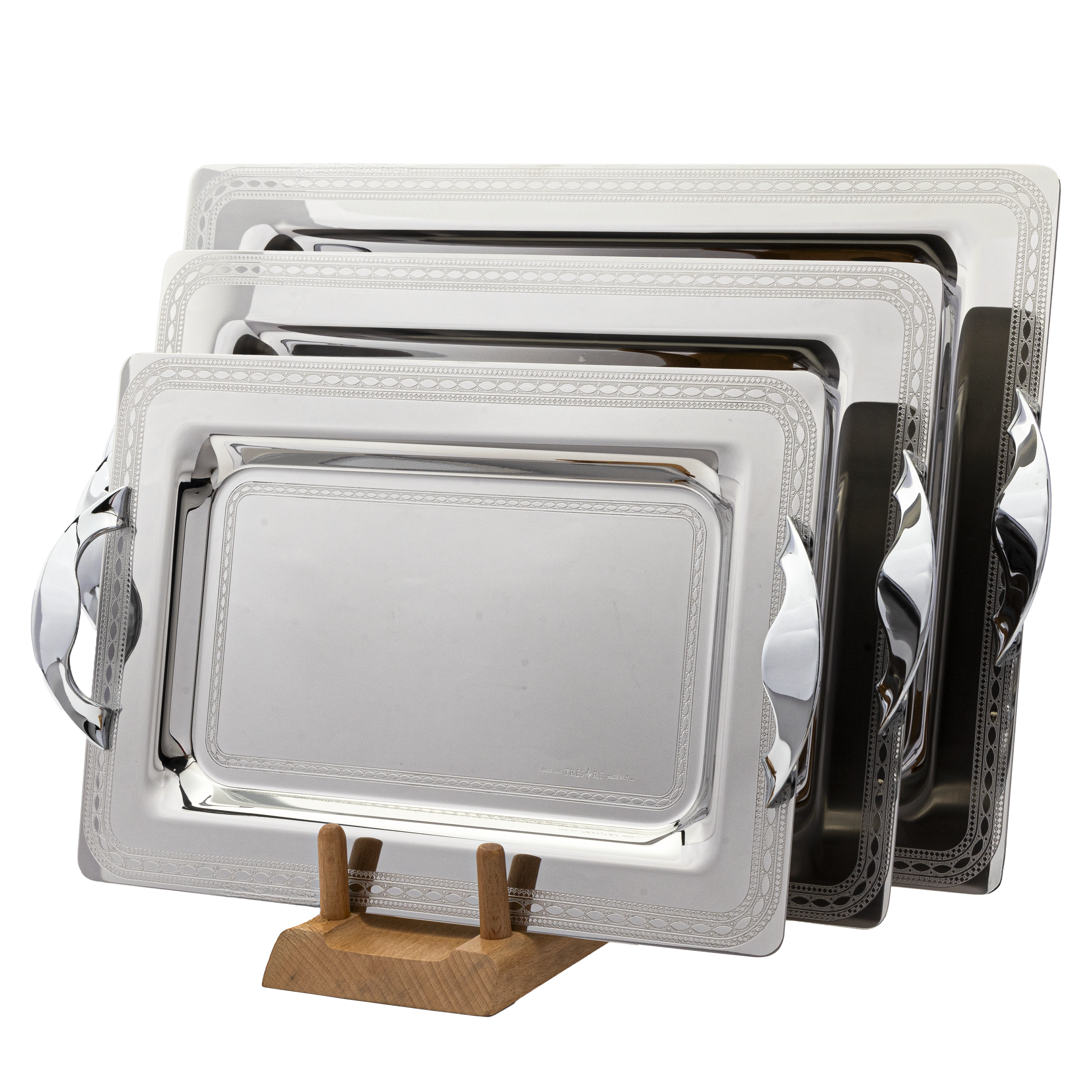 Item: Tresors Rectangular Tray with Handles, 3 Pieces -Made in Italy -Silver -Stainless Steel 18/10