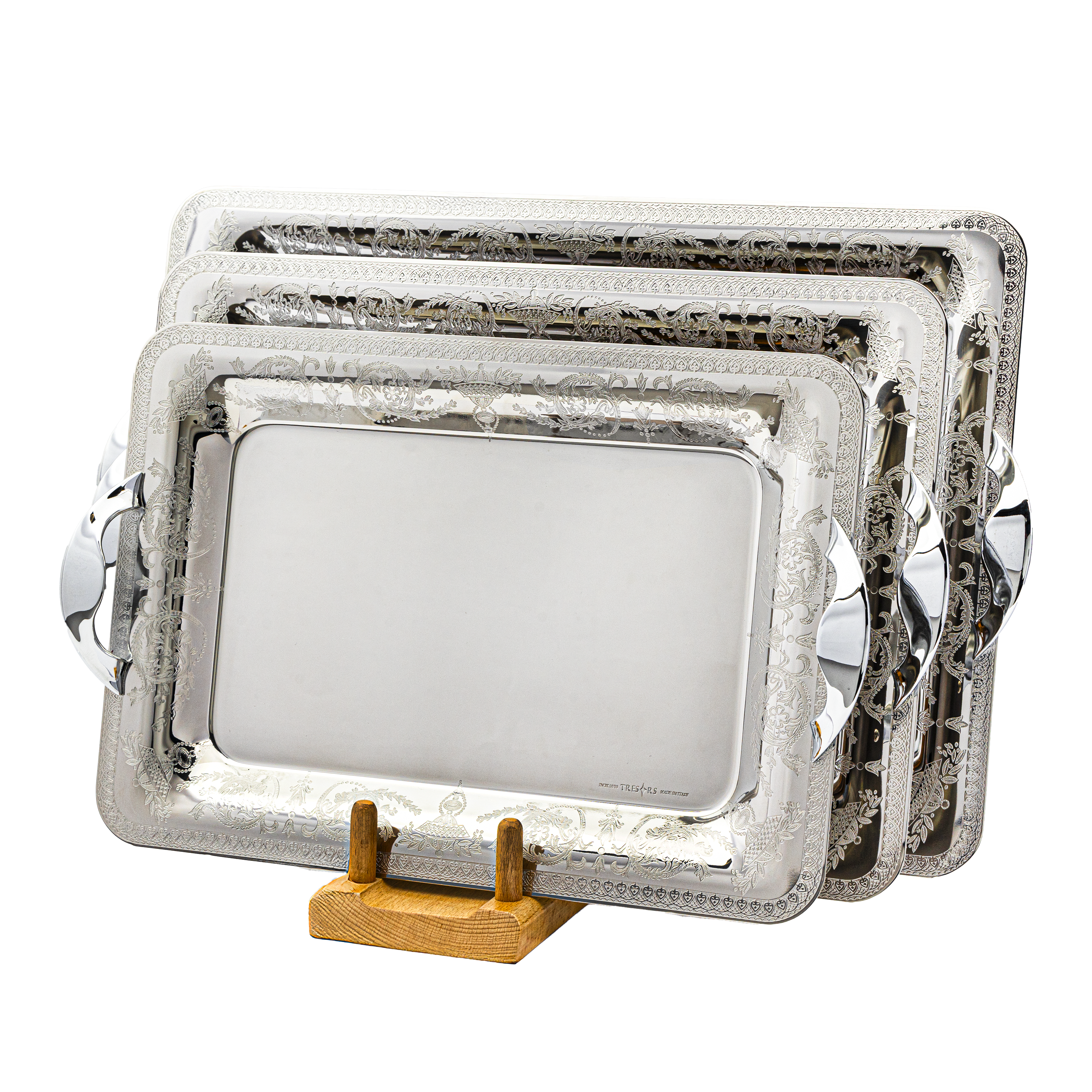 Item: Tresors Rectangular Tray with Handles, 3 Pieces -Made in Italy -Silver -Stainless Steel 18/10