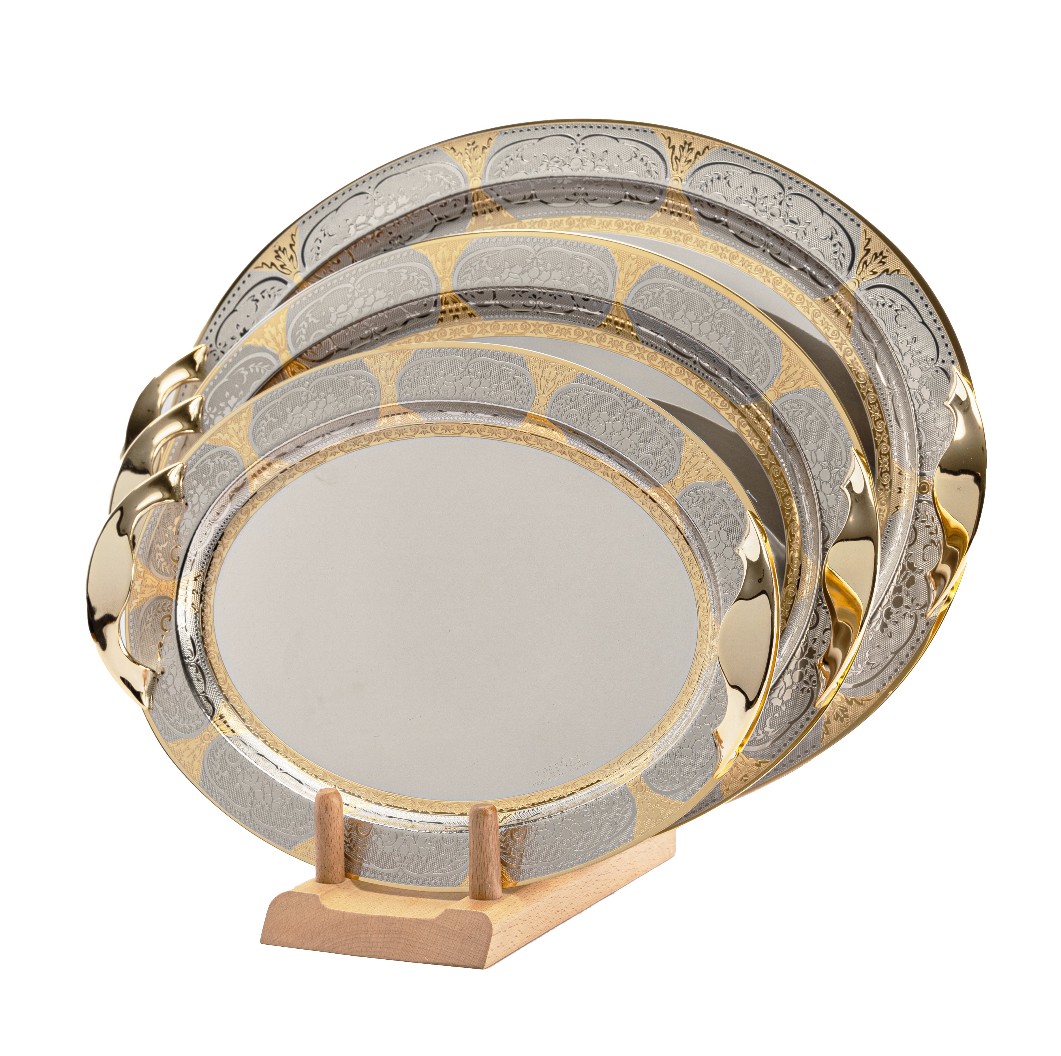 Item: Tresors Tray with Handles, 3 Pieces -Made in Italy -Silver & Gold -Stainless Steel 18/10