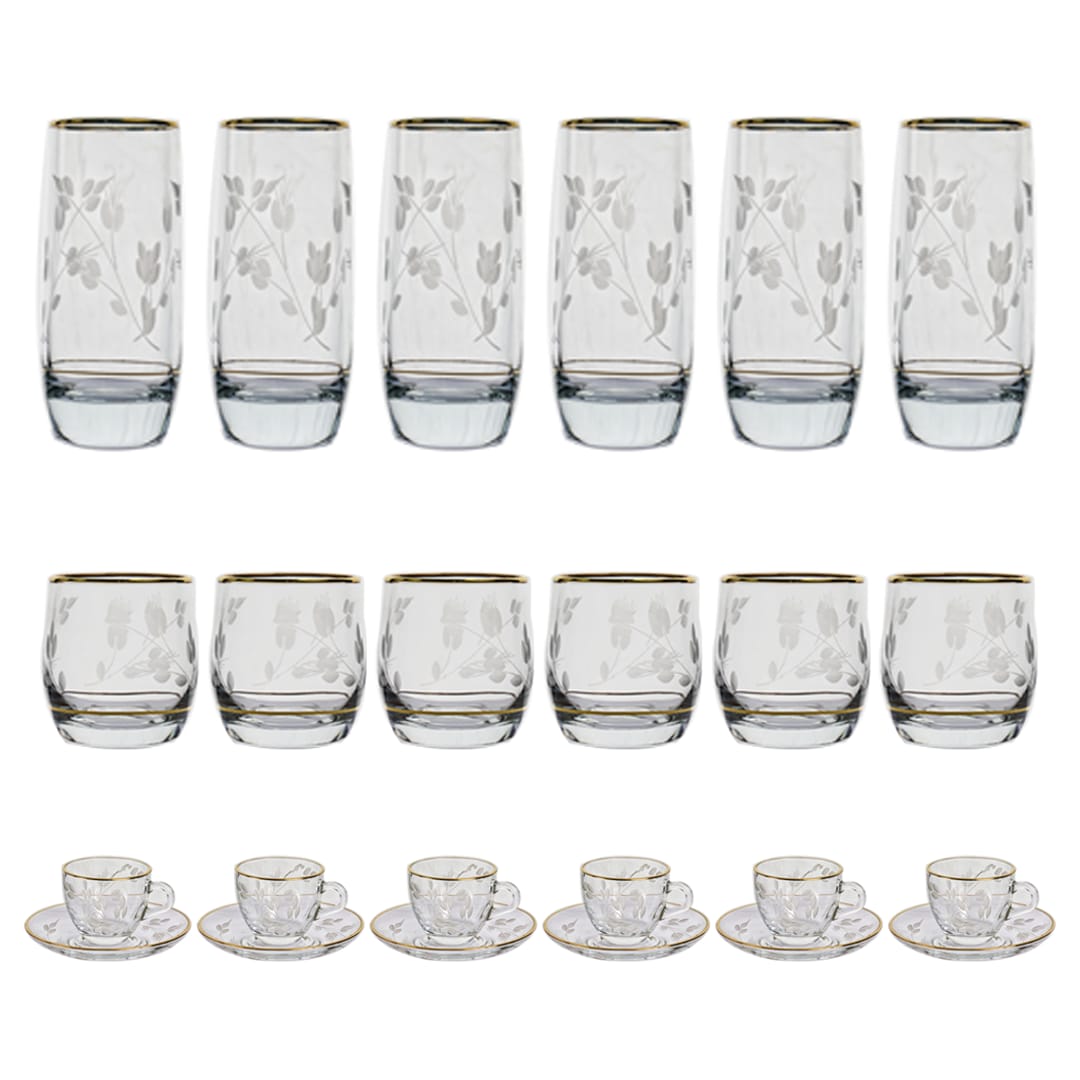 Item: Pasabahce Longdrink, Tumbler, Tea Cups & Saucer Set, 24 Pieces -Gold