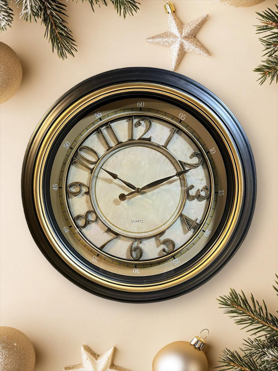 Wall Clock -58.2x58.2 cm -Black & Gold