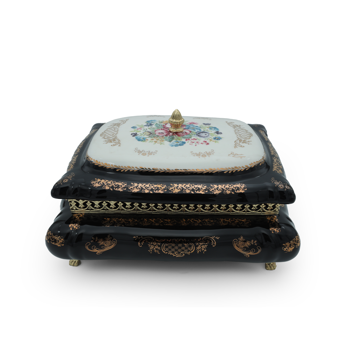 Item: Limoge Rostema Bonbonniere with Cover & Gold Plated Legs -Cobalt Blue & Gold -30x25x18 cm