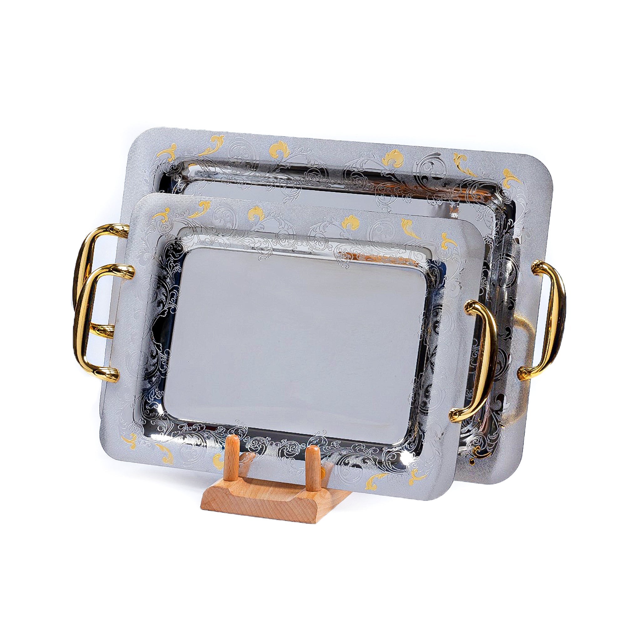 Item: Arsha Rectangular Tray with Handles, 2 Pieces -Stainless Steel 18/10