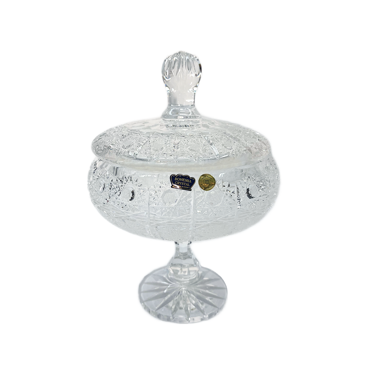 Item: Bohemia Crystal Bonbonniere with Cover and Base -Hand Cut -16.5 cm