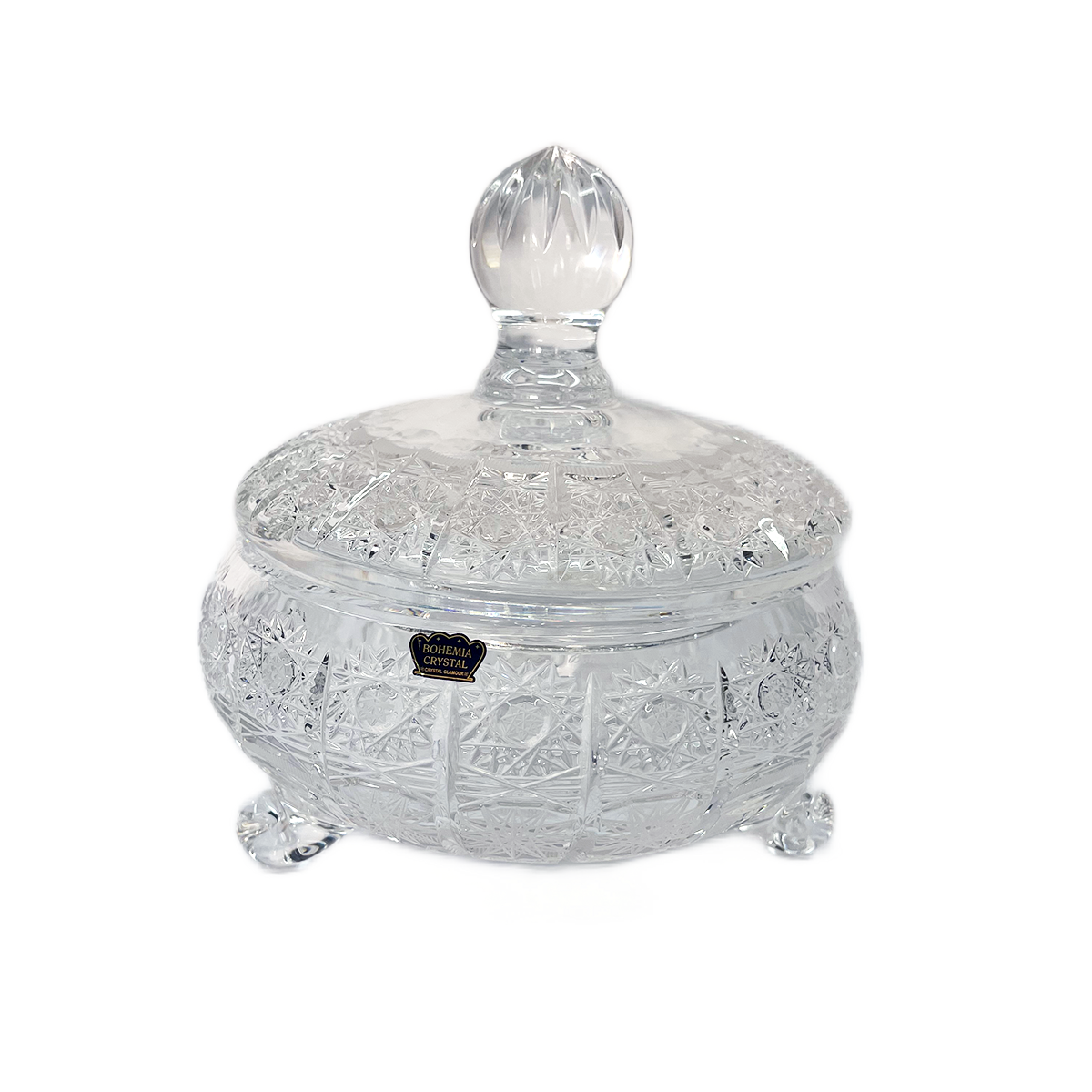 Item: Bohemia Crystal Bonbonniere with Cover and Legs -Hand Cut -19.5 cm