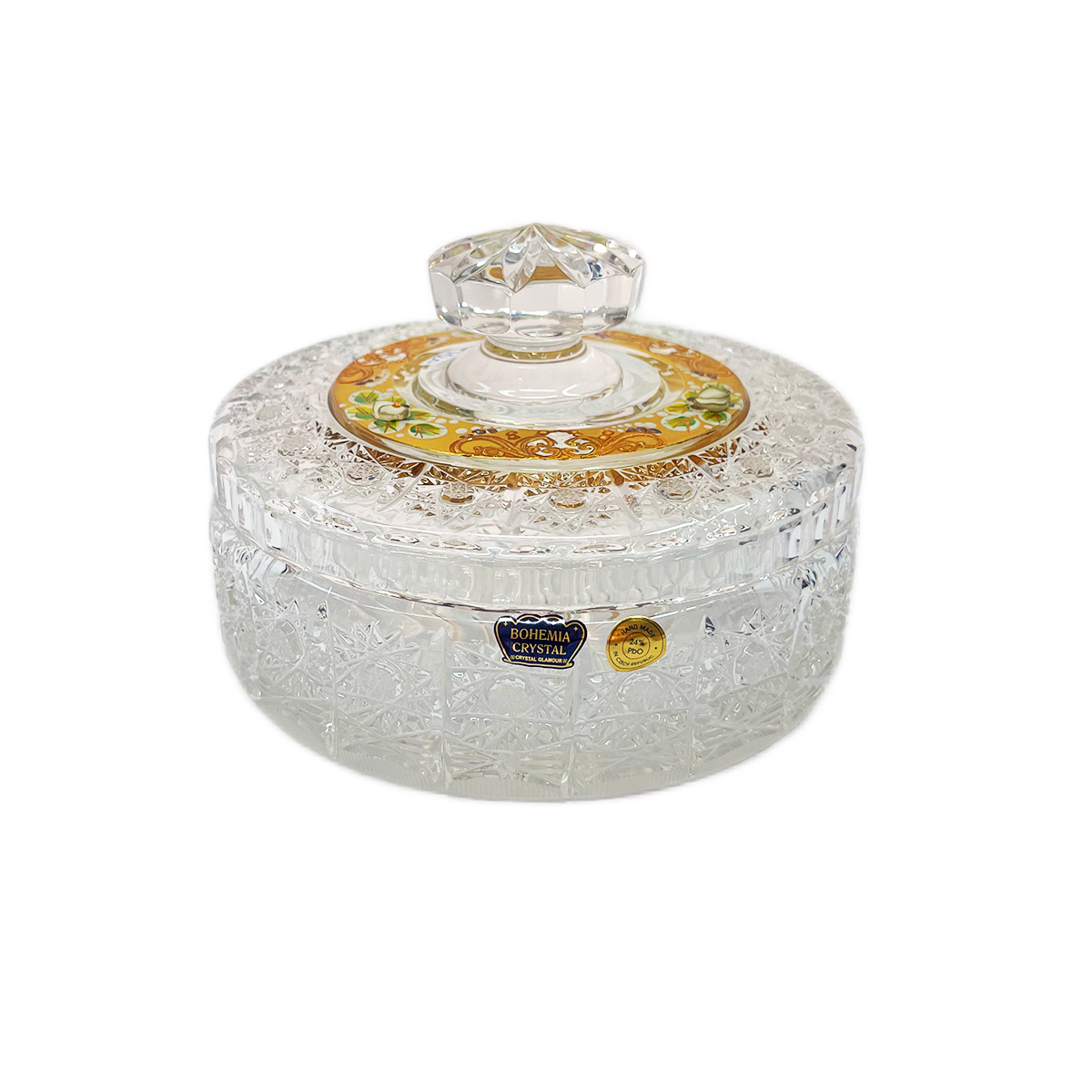 Bohemia Crystal Bonbonniere with Cover -Hand Cut -15.5 cm -Gold