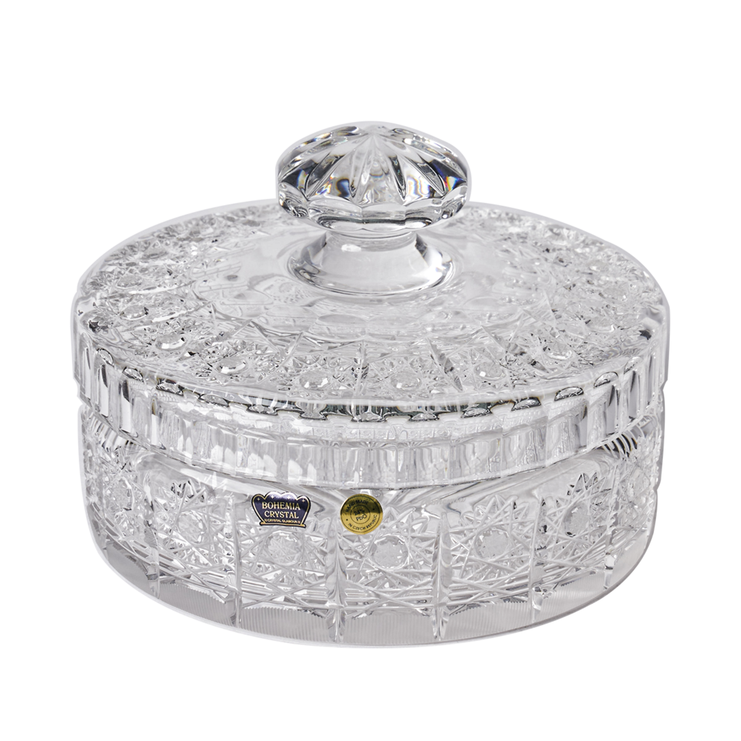 Item: Bohemia Crystal Bonbonniere with Cover -Hand Cut -18 cm
