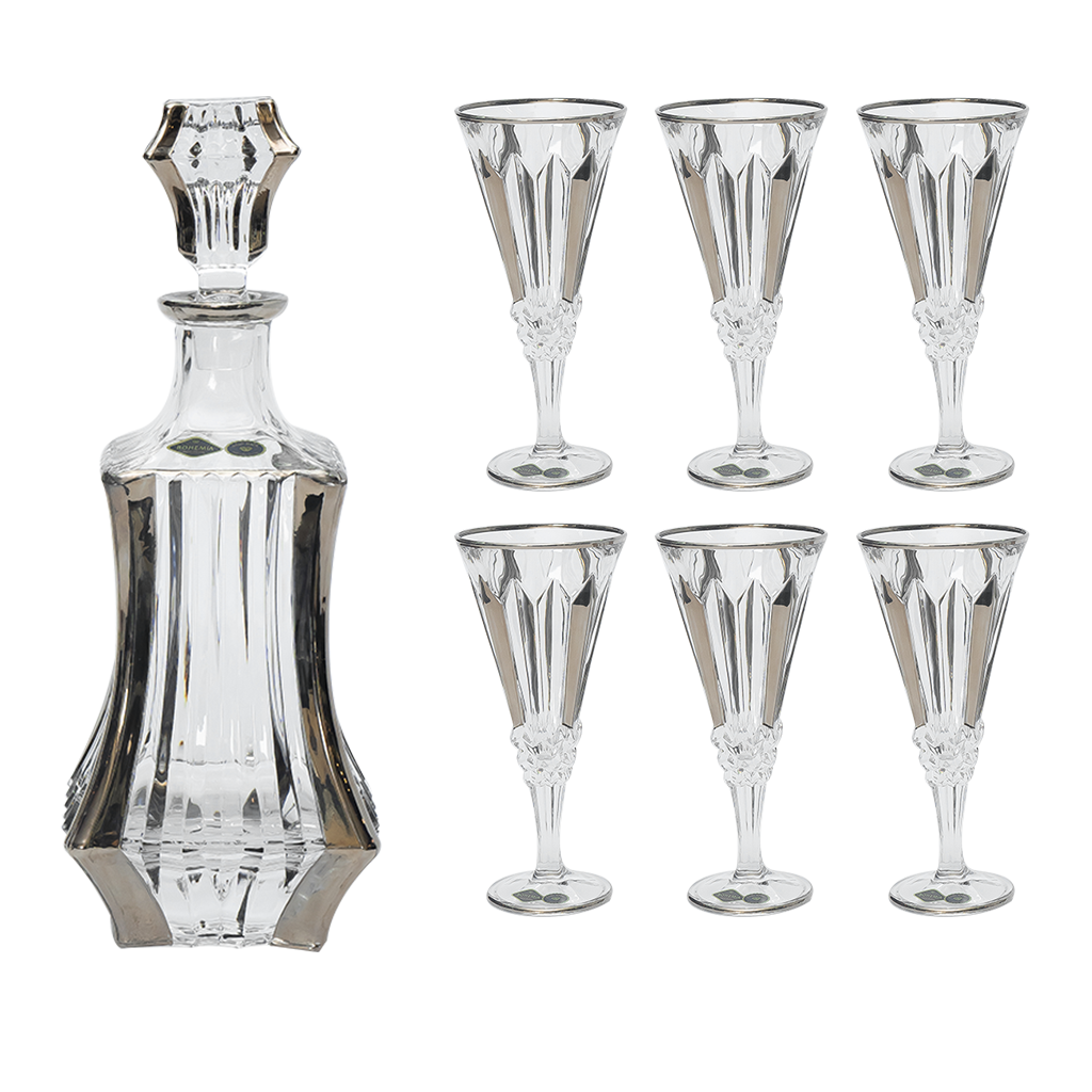 Bohemia Crystal Bottle & Goblet Set , 7 Pieces - Silver