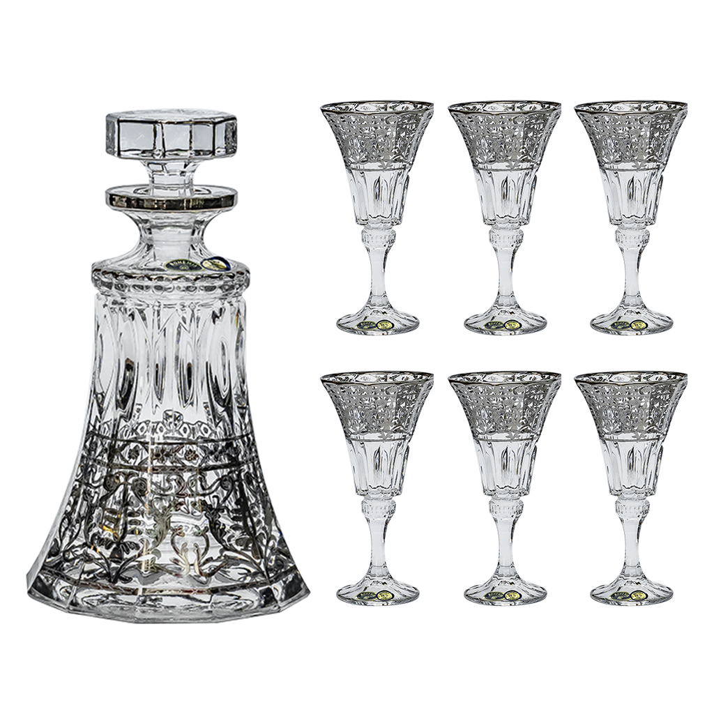 Bohemia Crystal Bottle & Goblet Set , 7 Pieces -Silver