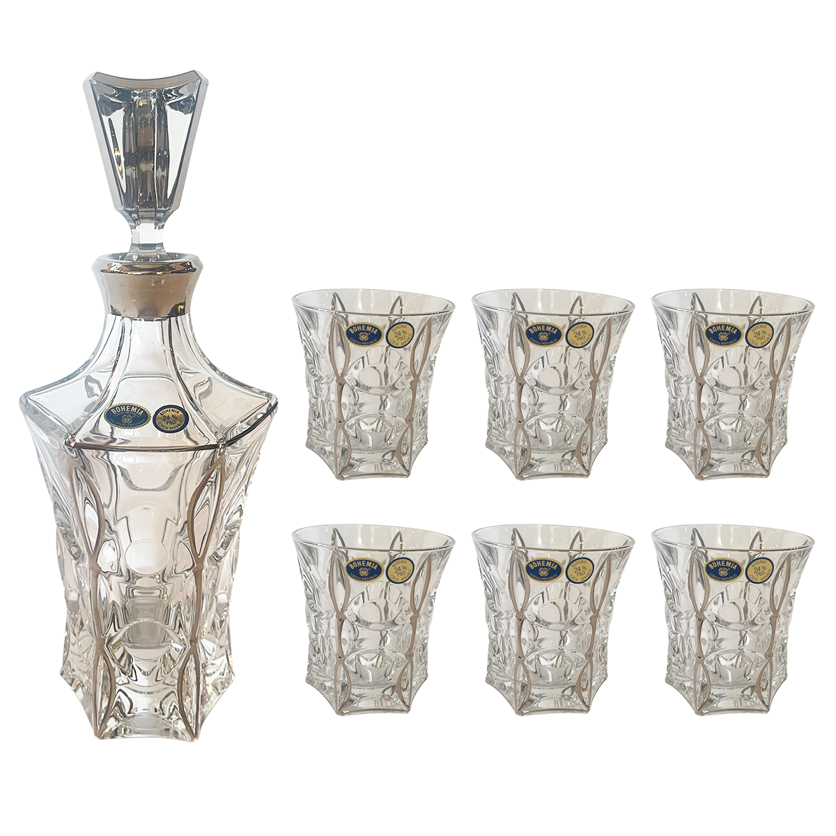 Item: Bohemia Crystal Bottle & Tumbler Set, 7 Pieces -Silver