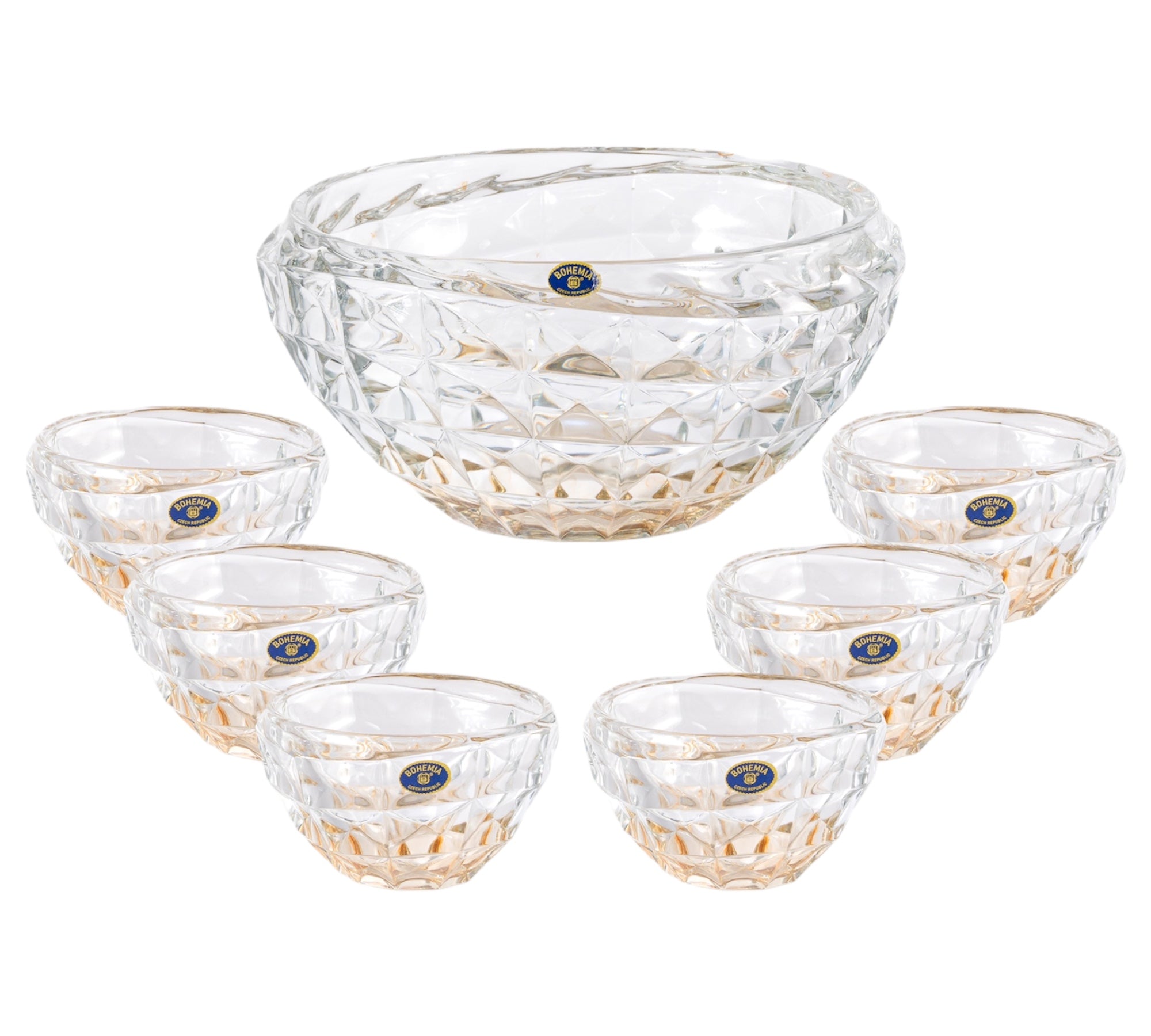 Bohemia Crystal Diamond Bowl Set, 7 Pieces