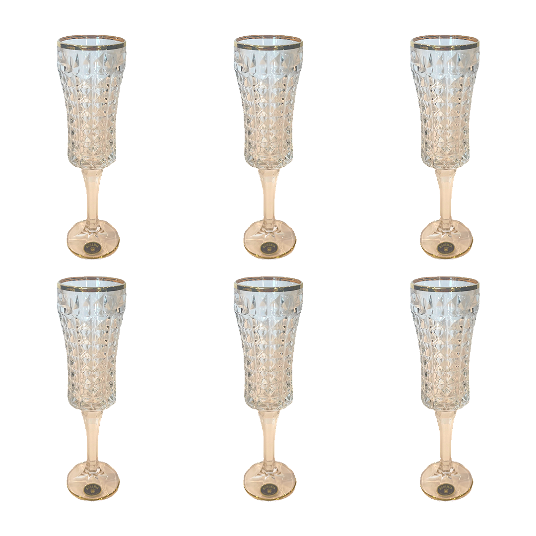 Item: Bohemia Crystal Flute Diamond Set, 6 Pieces -Gold -120 ml