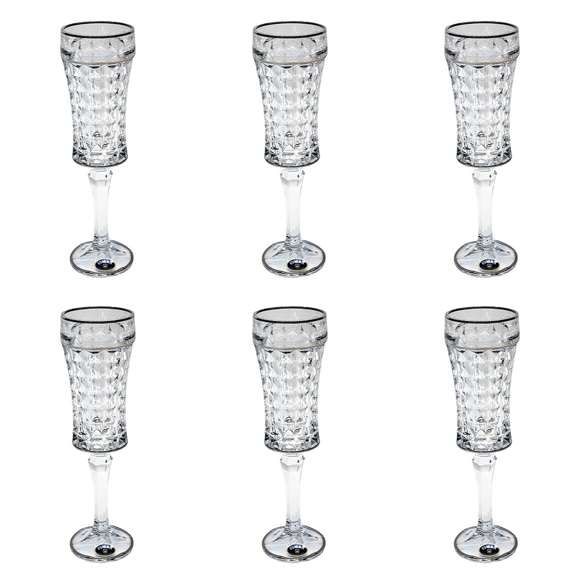Item: Bohemia Crystal Flute Diamond Set, 6 Pieces -Silver -120 ml