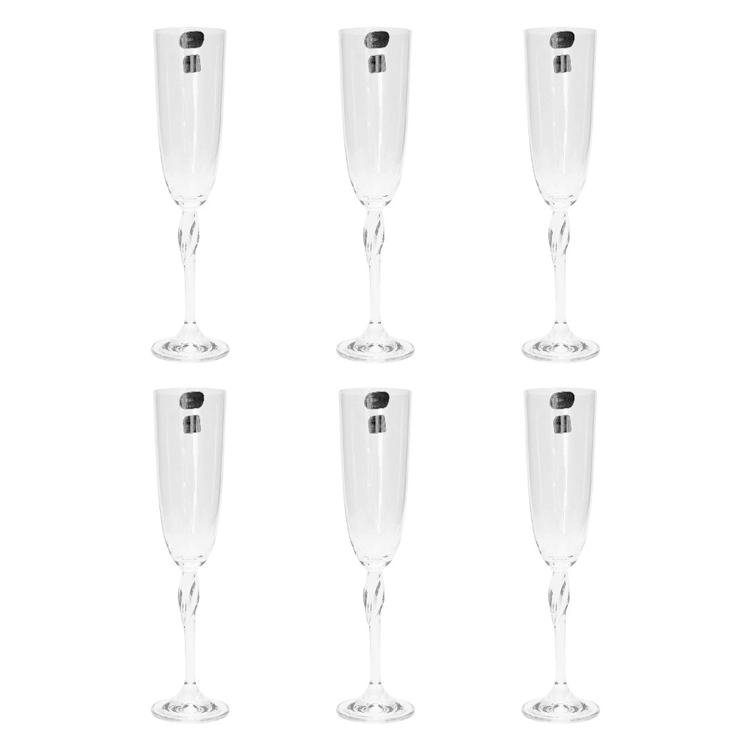 Bohemia Crystal Flute Set, 6 Pieces -220 ml