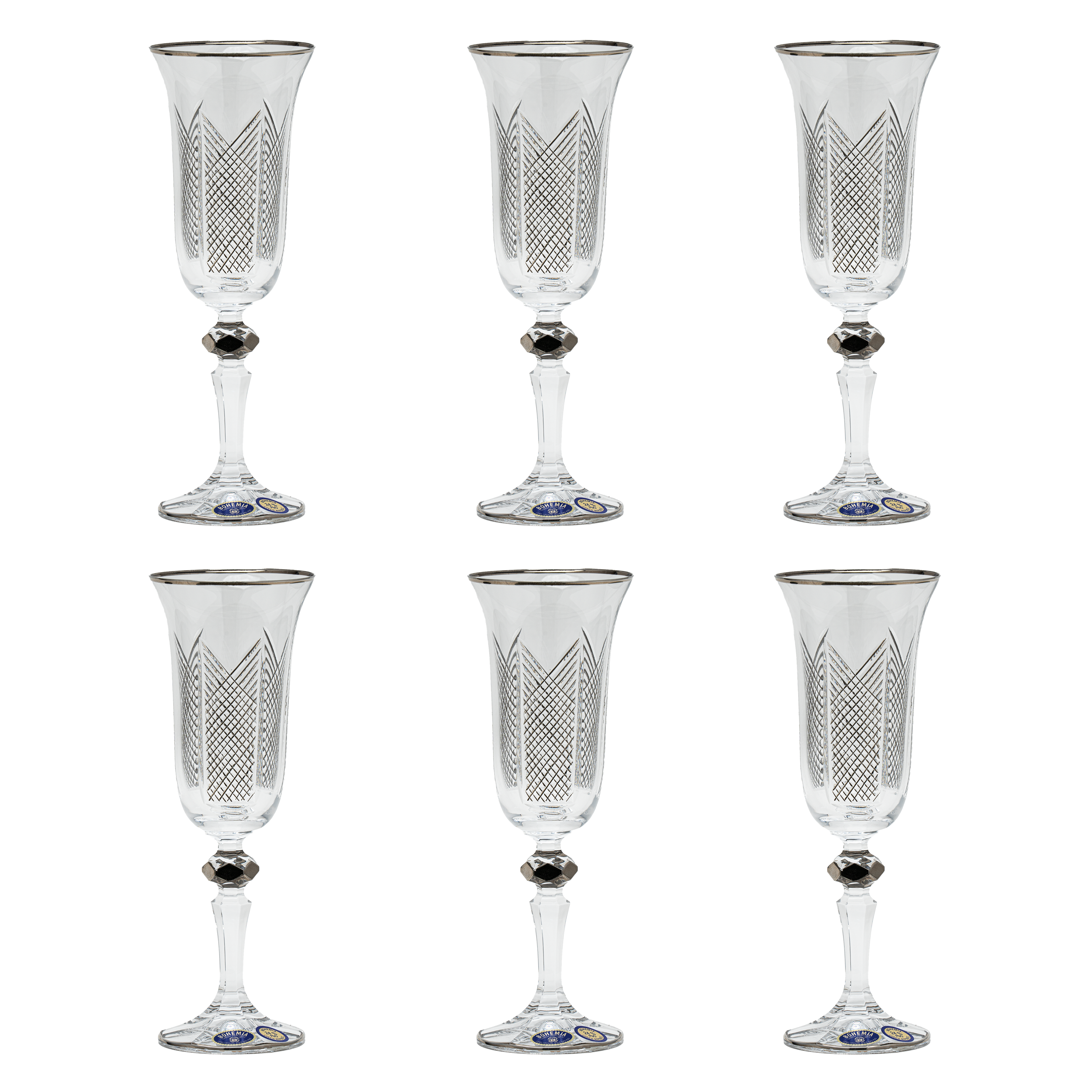 Item: Bohemia Crystal Flute Set, 6 Pieces -Silver