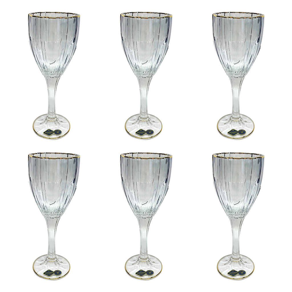 Bohemia Crystal Goblet Set, 6 Pieces -Blue & Gold