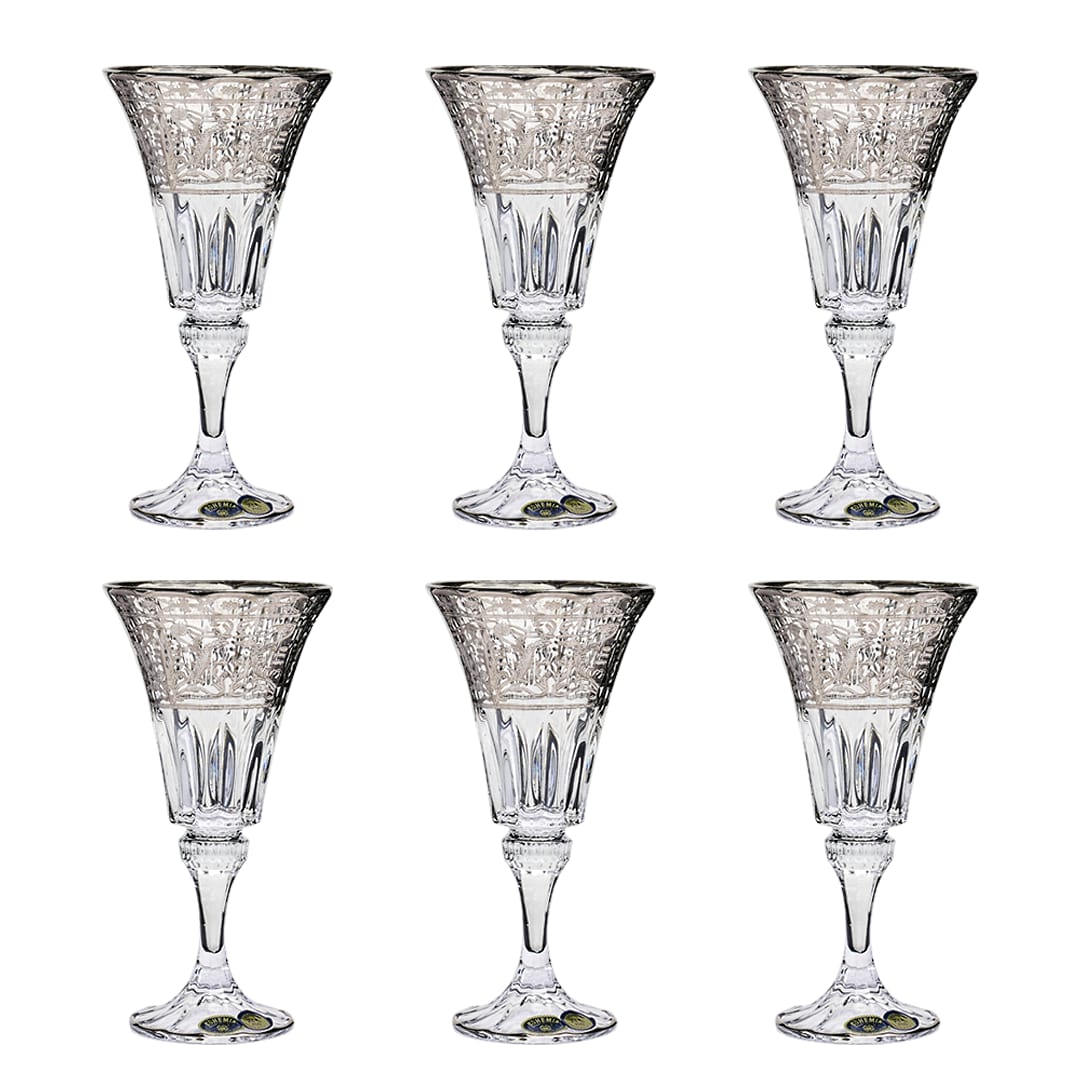 Bohemia Crystal Goblet Set, 6 Pieces -Silver