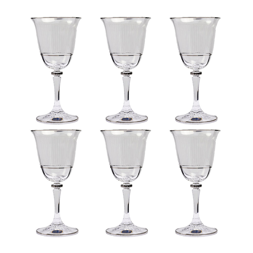 Bohemia Crystal Goblet Set, 6 Pieces -Silver -200 ml