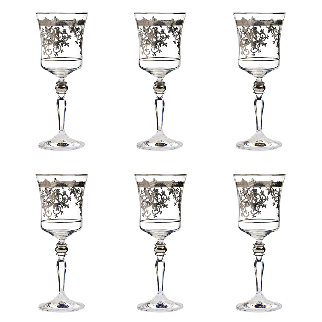 Item: Bohemia Crystal Goblet Set, 6 Pieces -Silver -220 ml