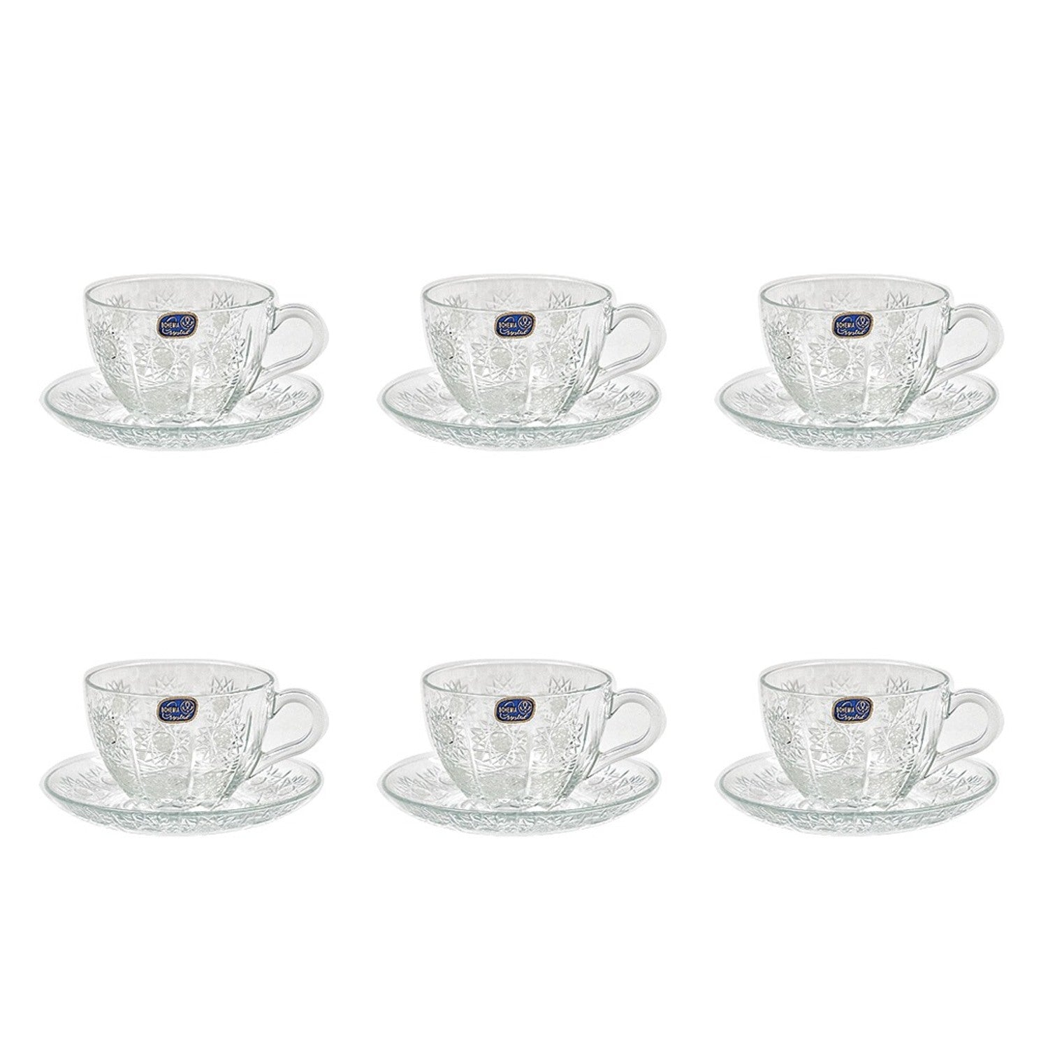 Bohemia Crystal Tea Cup with Saucer Set, 12 Pieces