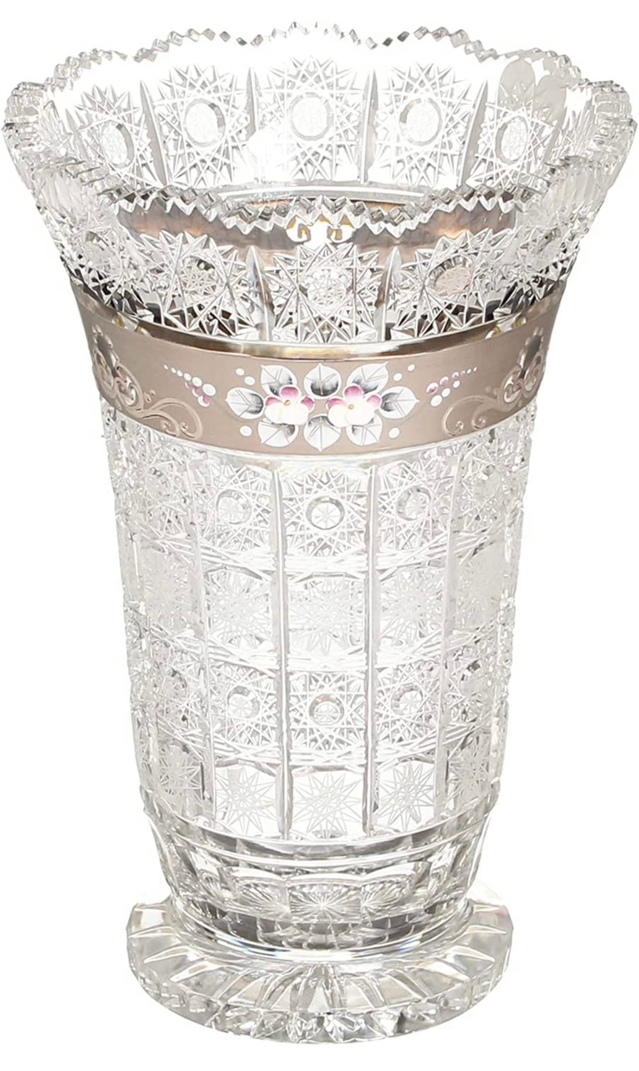 Bohemia Crystal Vase with Base -Hand Cut -Silver -30.5 cm