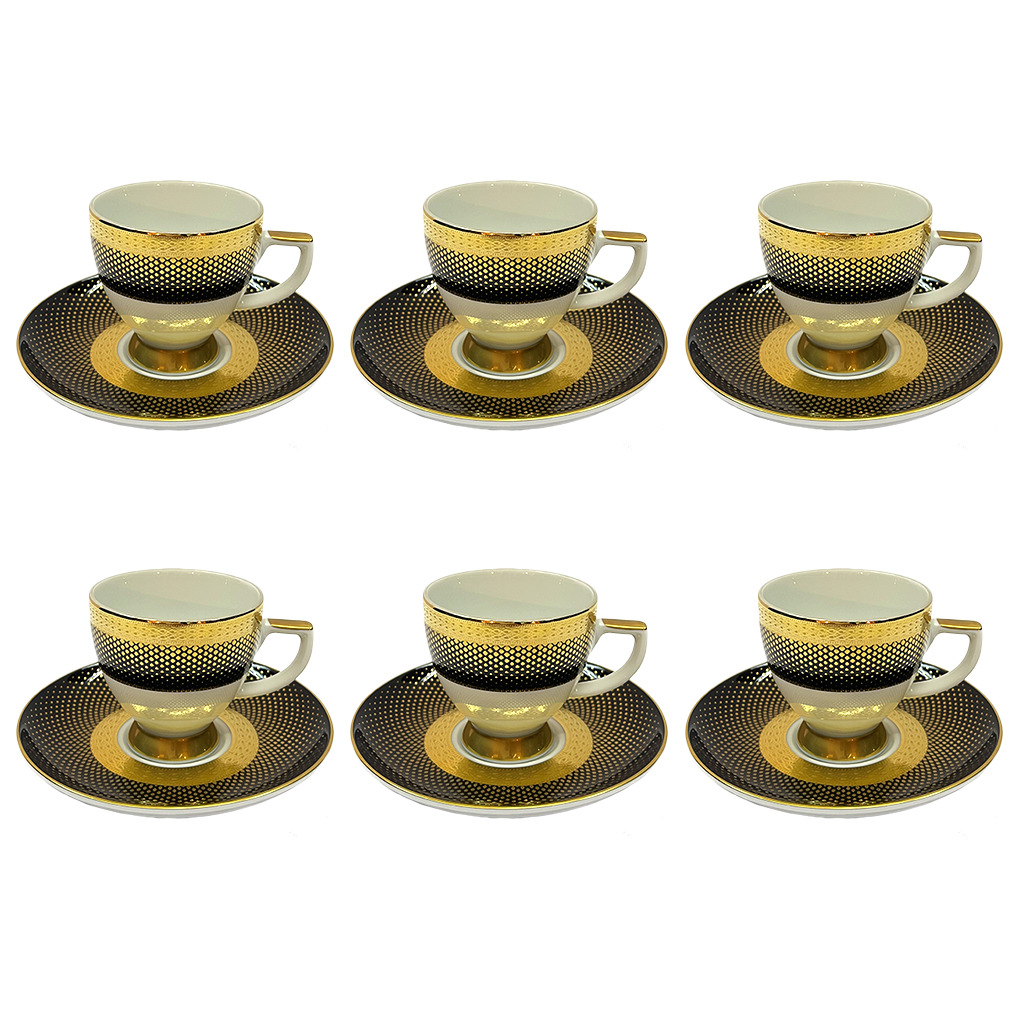 Falkenporzellan Coffee Set, 12 Pieces -Black & Gold -Porcelain