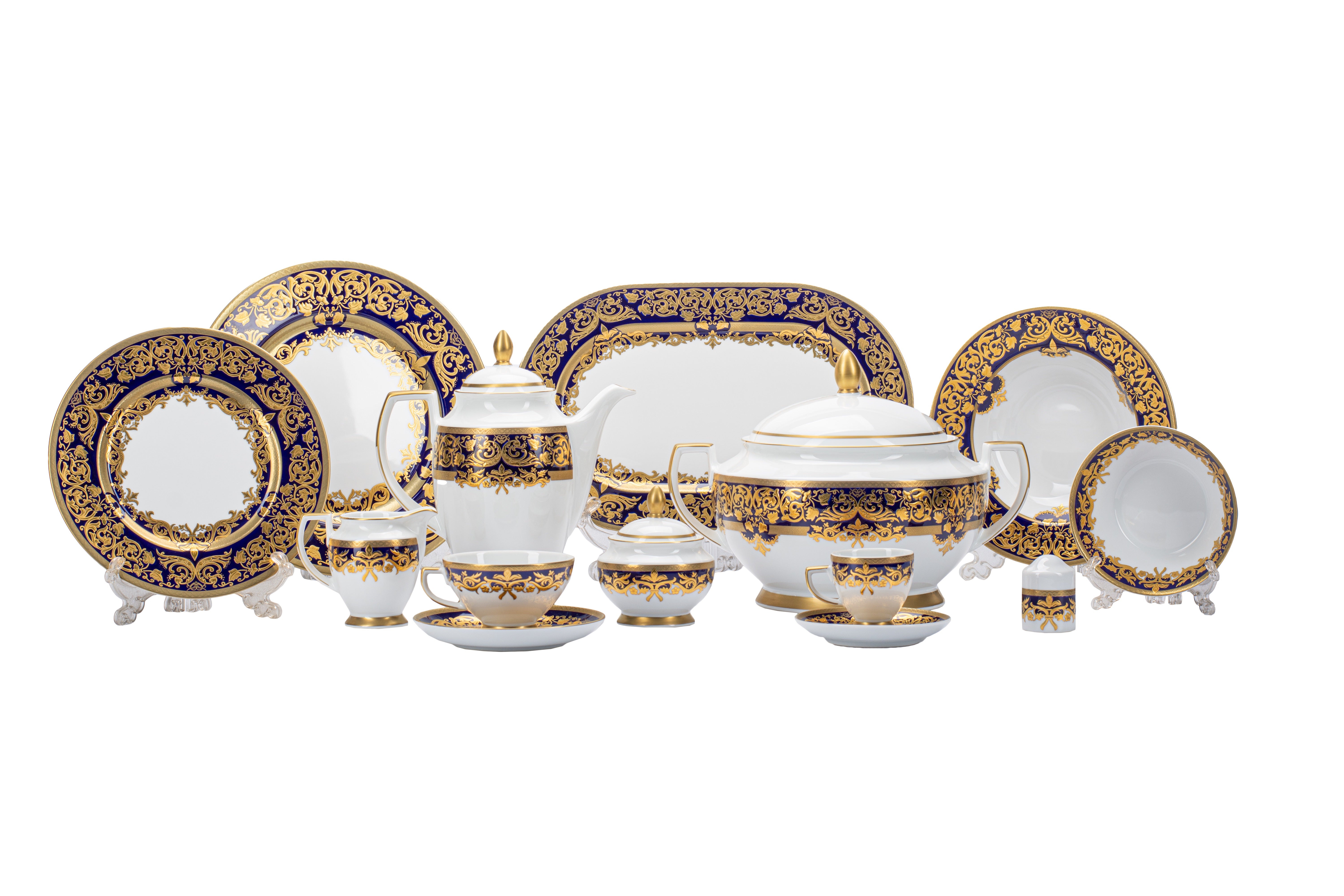 Falkenporzellan Dinner Set, 112 Pieces -Blue & Gold -Porcelain