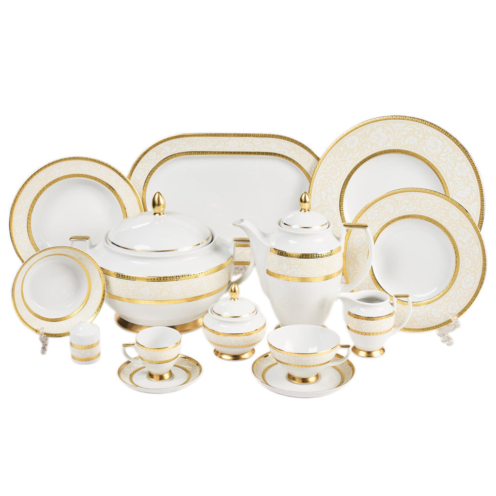 Falkenporzellan Dinner Set, 112 Pieces -Gold & Cream & White -Porcelain