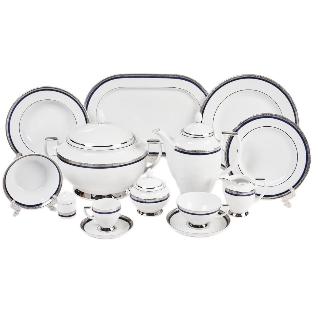 Falkenporzellan Dinner Set, 112 Pieces -Silver & Blue -Porcelain