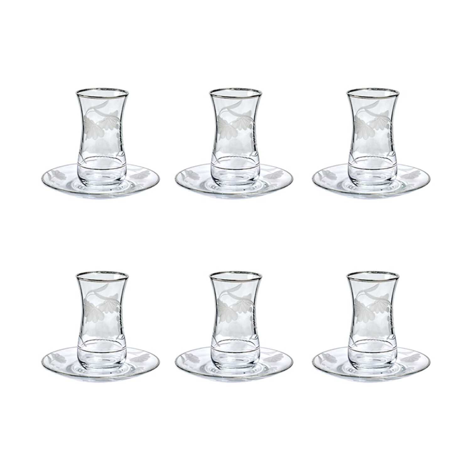 Item: Pasabahce Istikana with Saucer Set, 12 Pieces -Silver