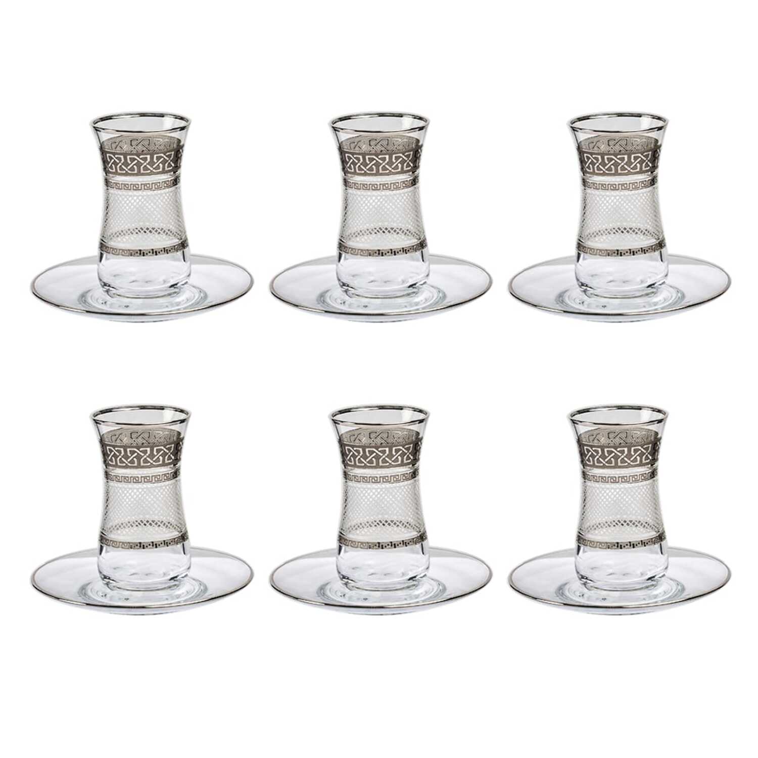Item: Pasabahce Istikana with Saucer Set, 12 Pieces -Silver