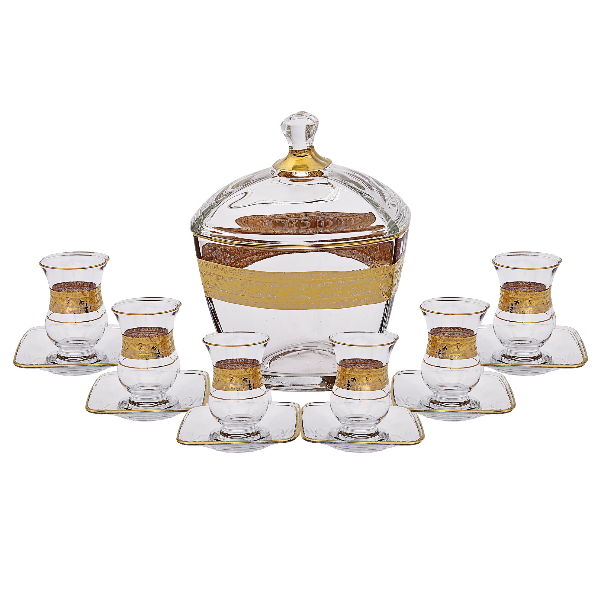 Item: Pasabahce Istikana Set, 14 Pieces -Gold